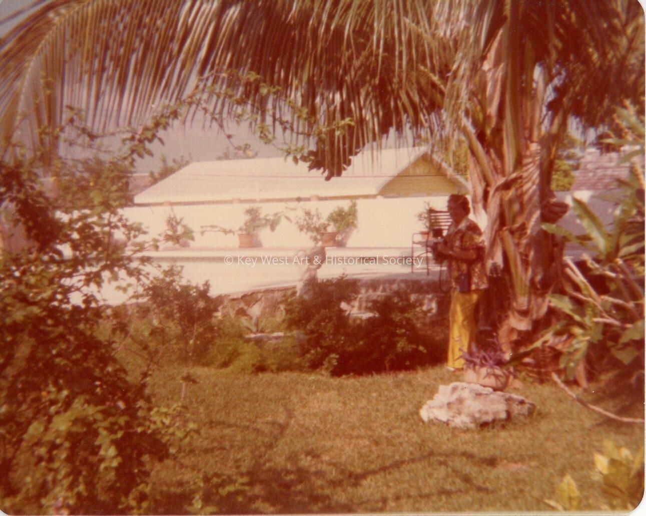 An unknown woman standing in a yard.