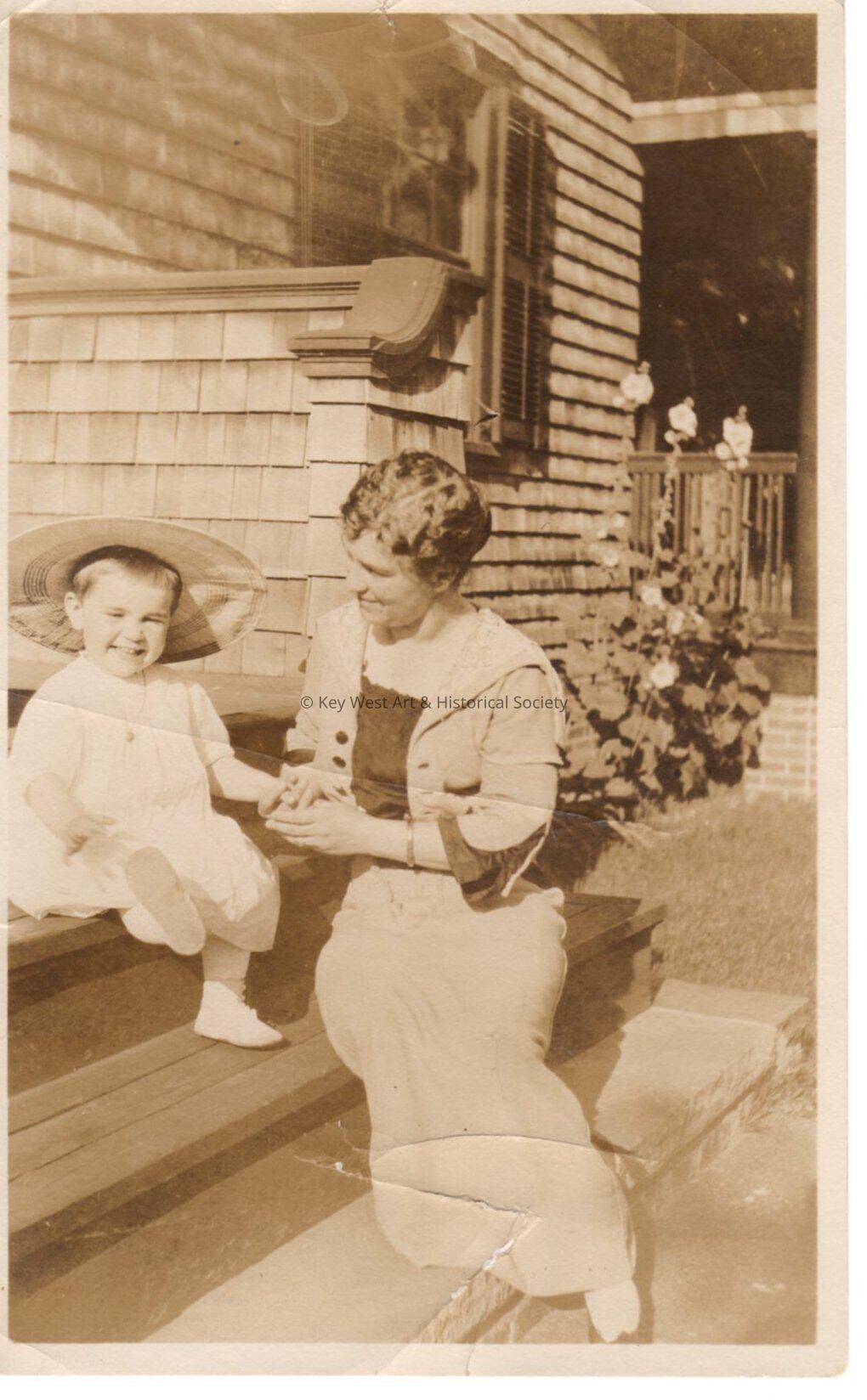 unknown woman and child on porch