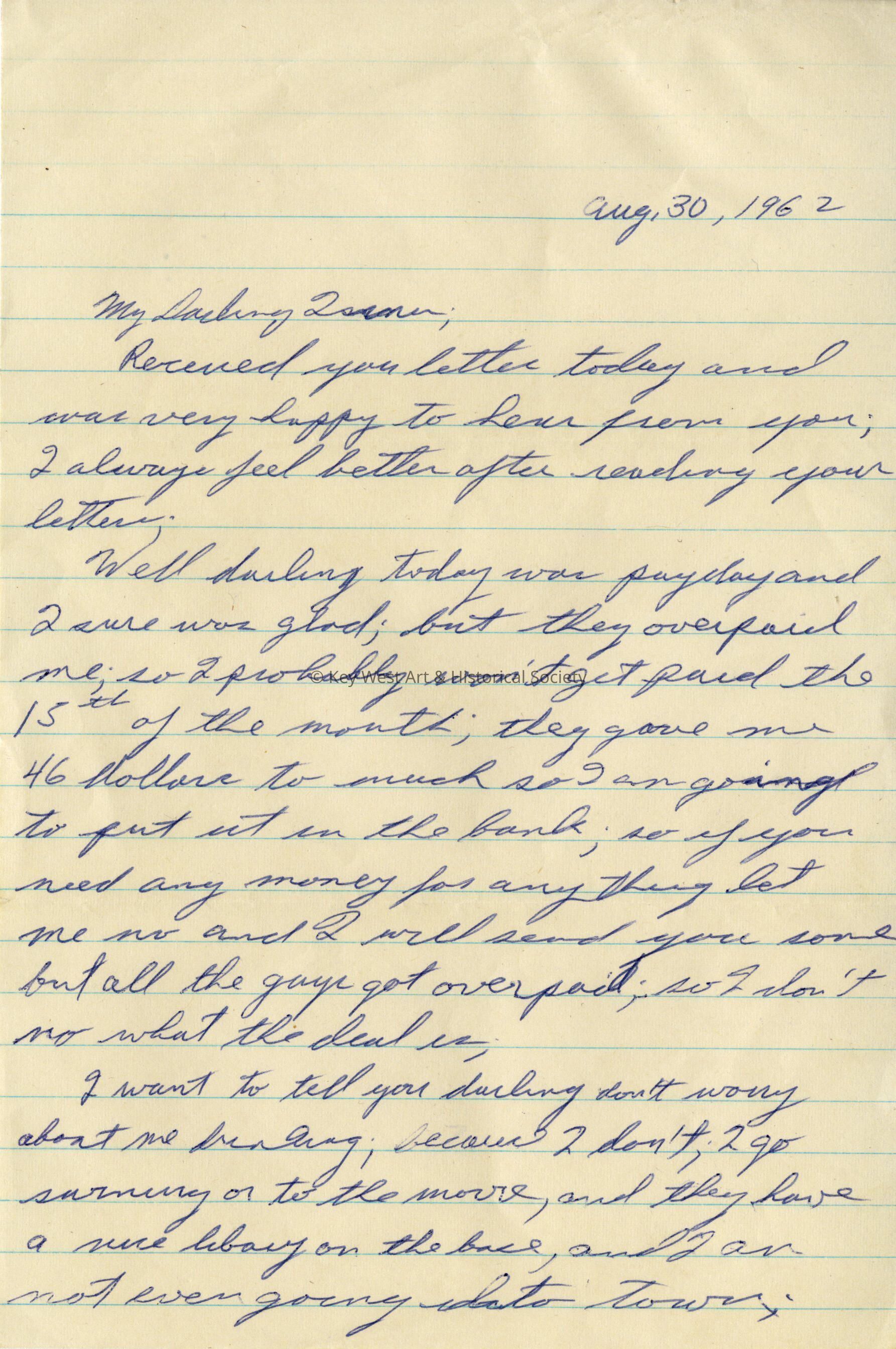 Handwritten letter from Lloyd Pine to his wife, Irma Pine, during the run up to the Cuban Missile Crisis. Pine was stationed at Naval Air Station Key West.