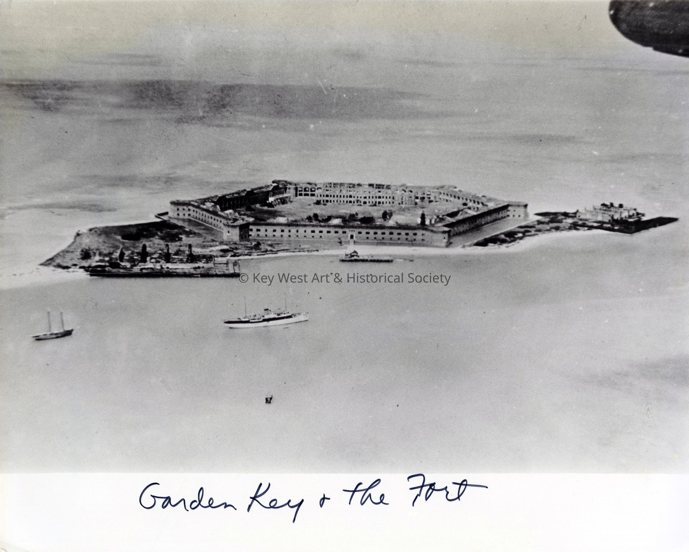 Black and white aerial photograph of Fort Jefferson on Garden Key