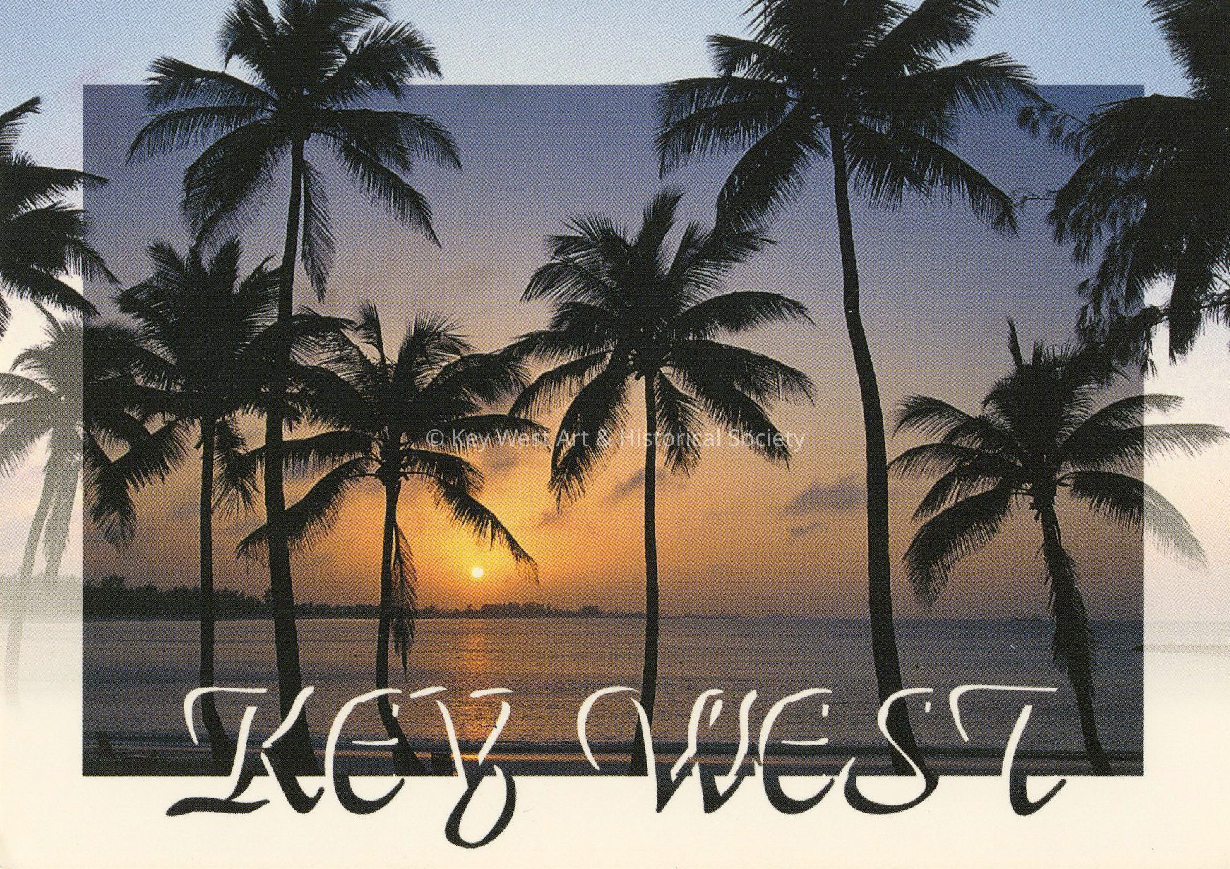 Color postcard depicting sunset along North Roosevelt Boulevard. Notation on verso, 'Another perfect Key West sunset.'