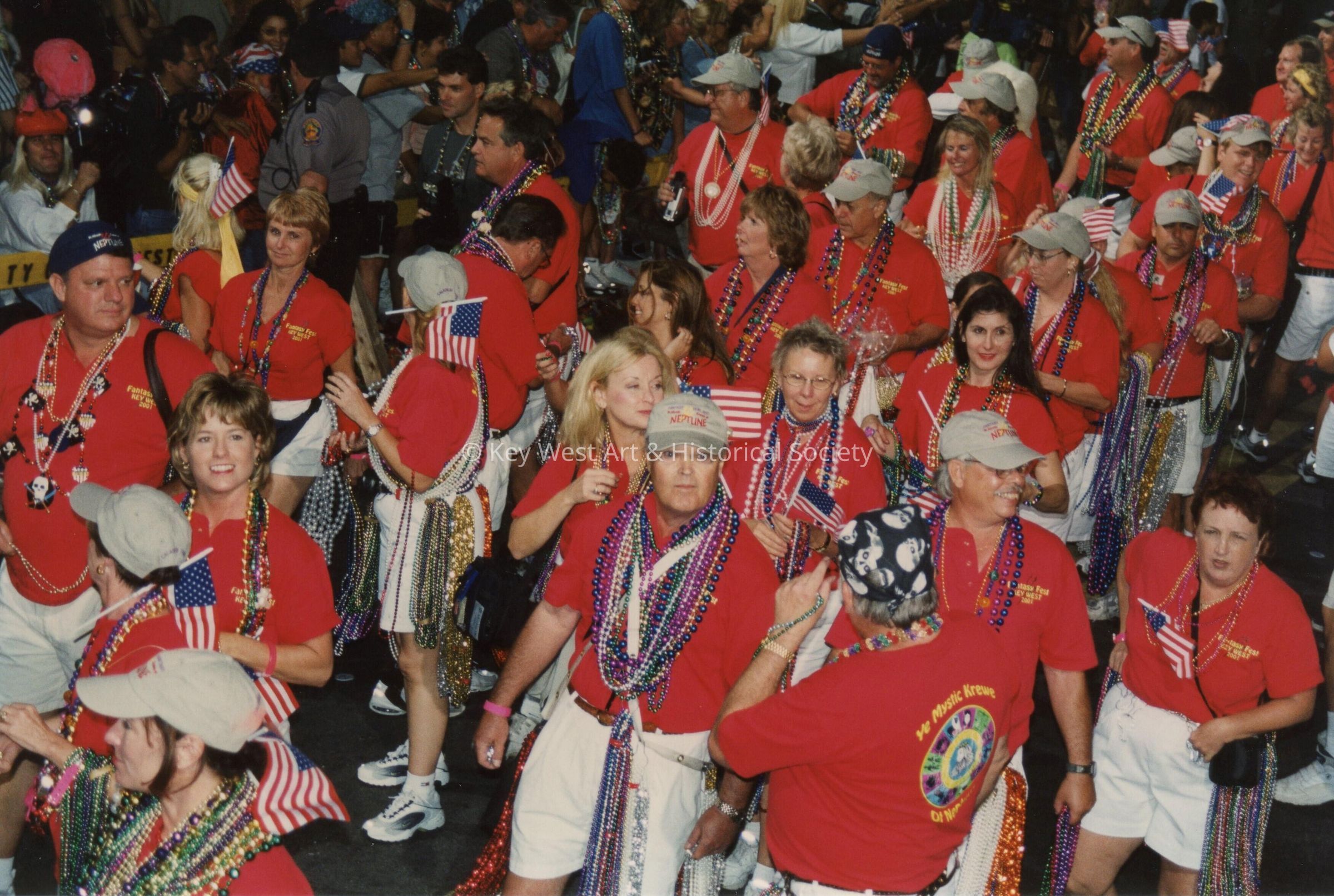 A group on unknown people walking in the street for the parade.Entry/Object ID