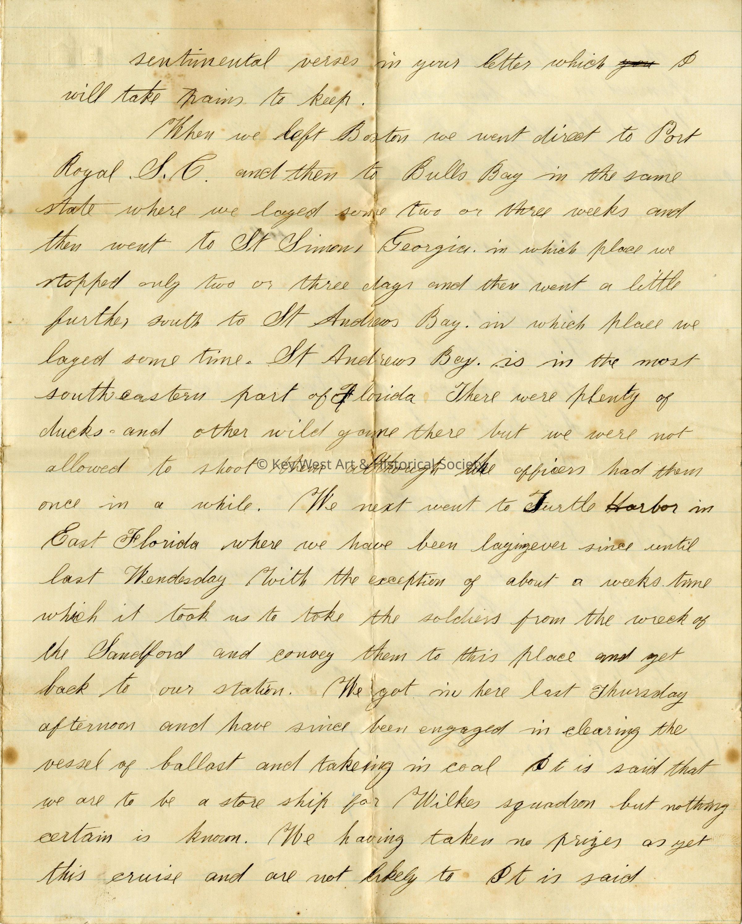 Civil War Letter from Key West aboard U.S. Bark GemsbokEntry/Object ID