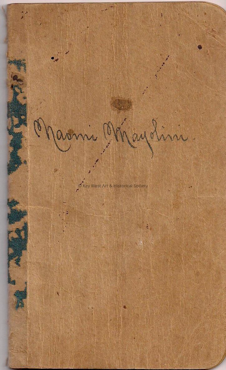 Account book that belonged to Naomi Mayolini. Book contains a list of expenses including tuition made to the convent.