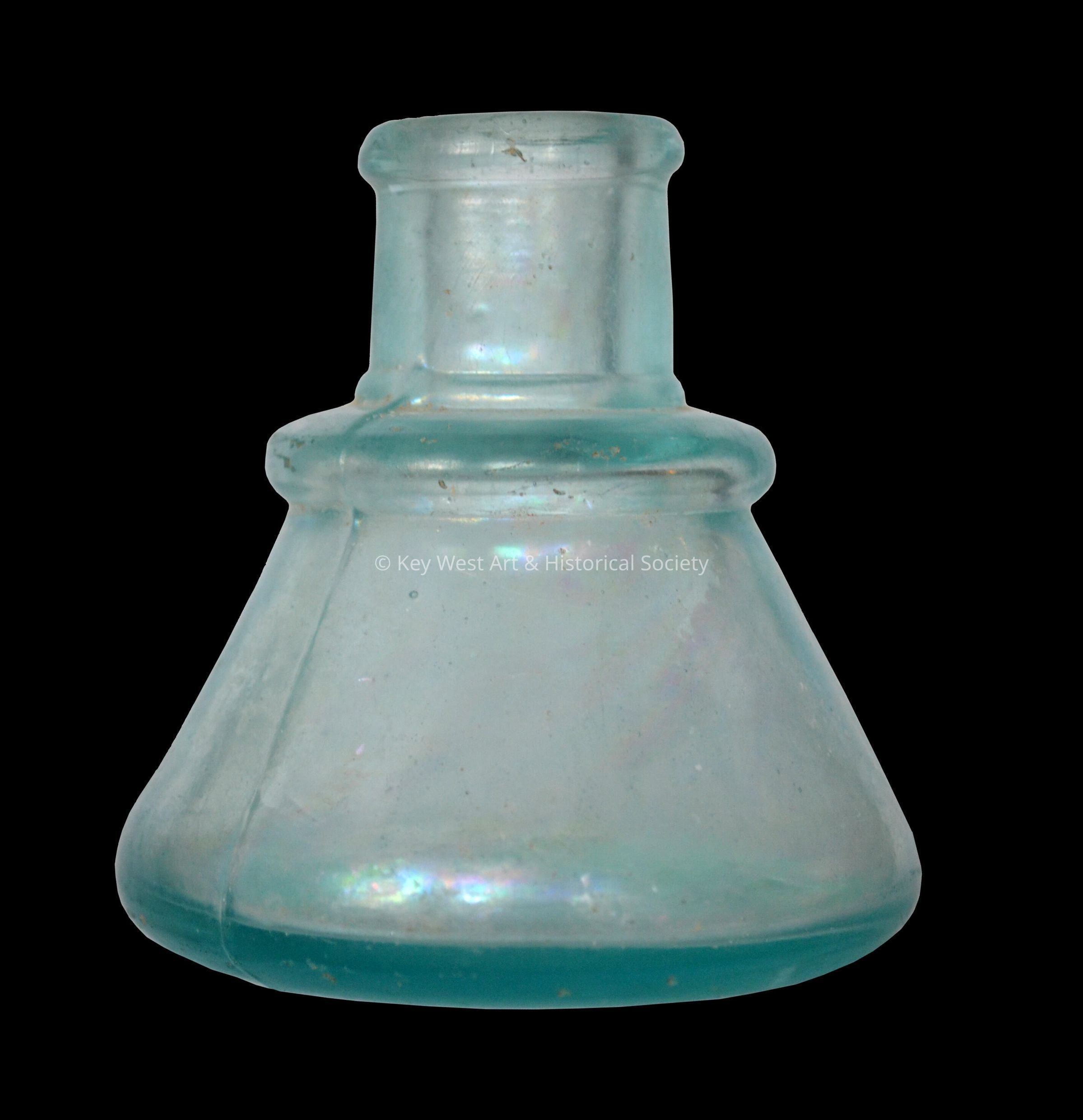 Clear glass ink bottle with no embossing and no top. The bottle was originally excavated by the donor's mother, Grace Curlee, during the restoration of Fort Zachary Taylor in the 1960s.Collection