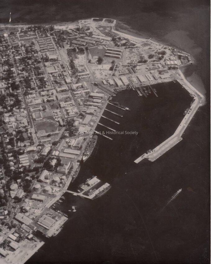 Aerial view (from the north) of western Key West, including Fort Taylor and the US Naval Station, circa 1963.Collection