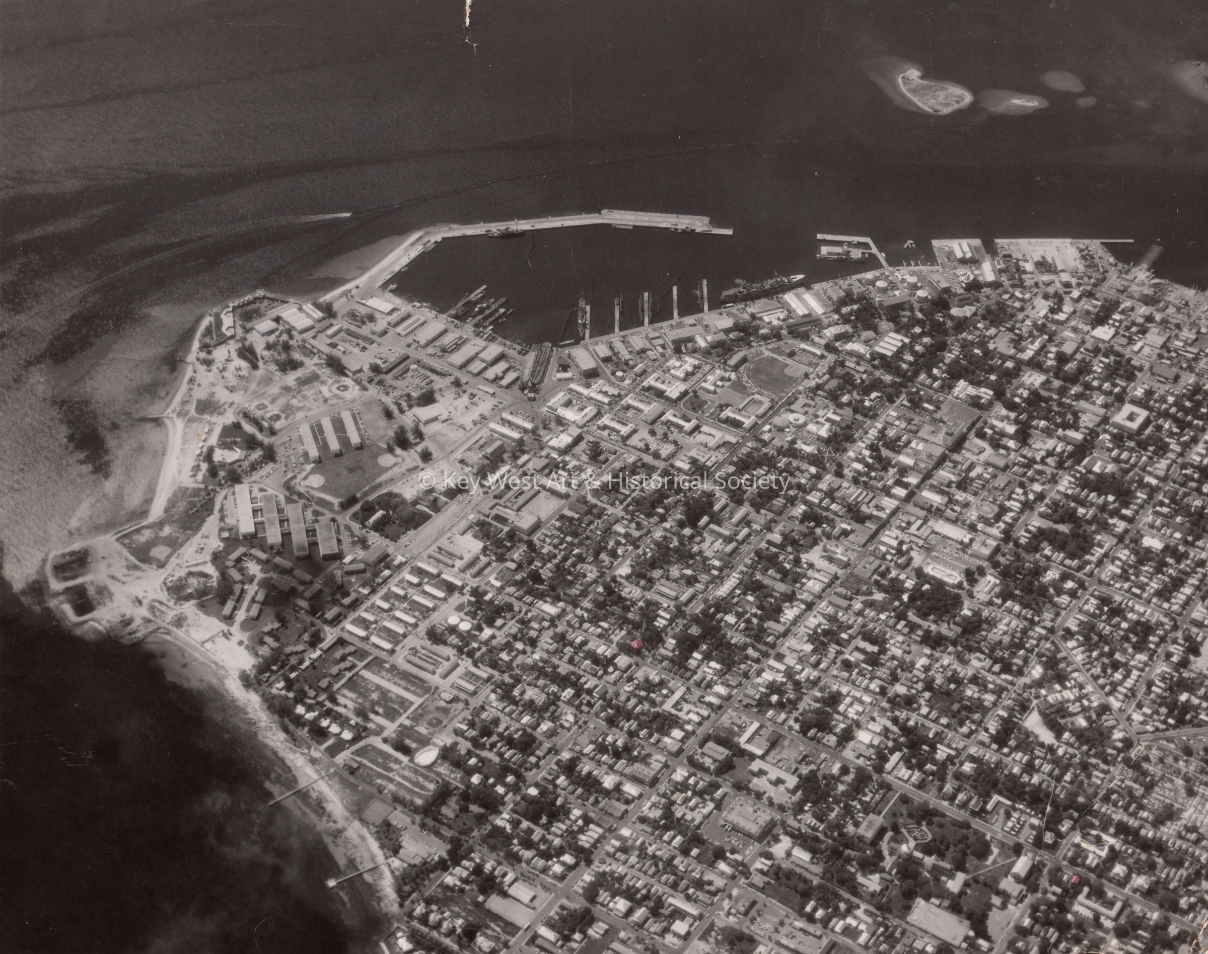 Aerial view (from the south) of western Key West, including Fort Taylor and the US Naval Station.Collection