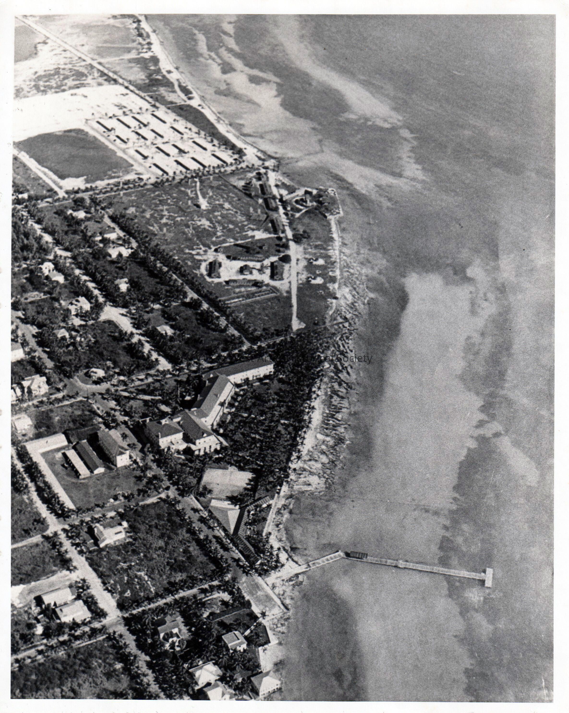 Black and white aerial photograph of the southern end of White Street and the Casa Marina area.