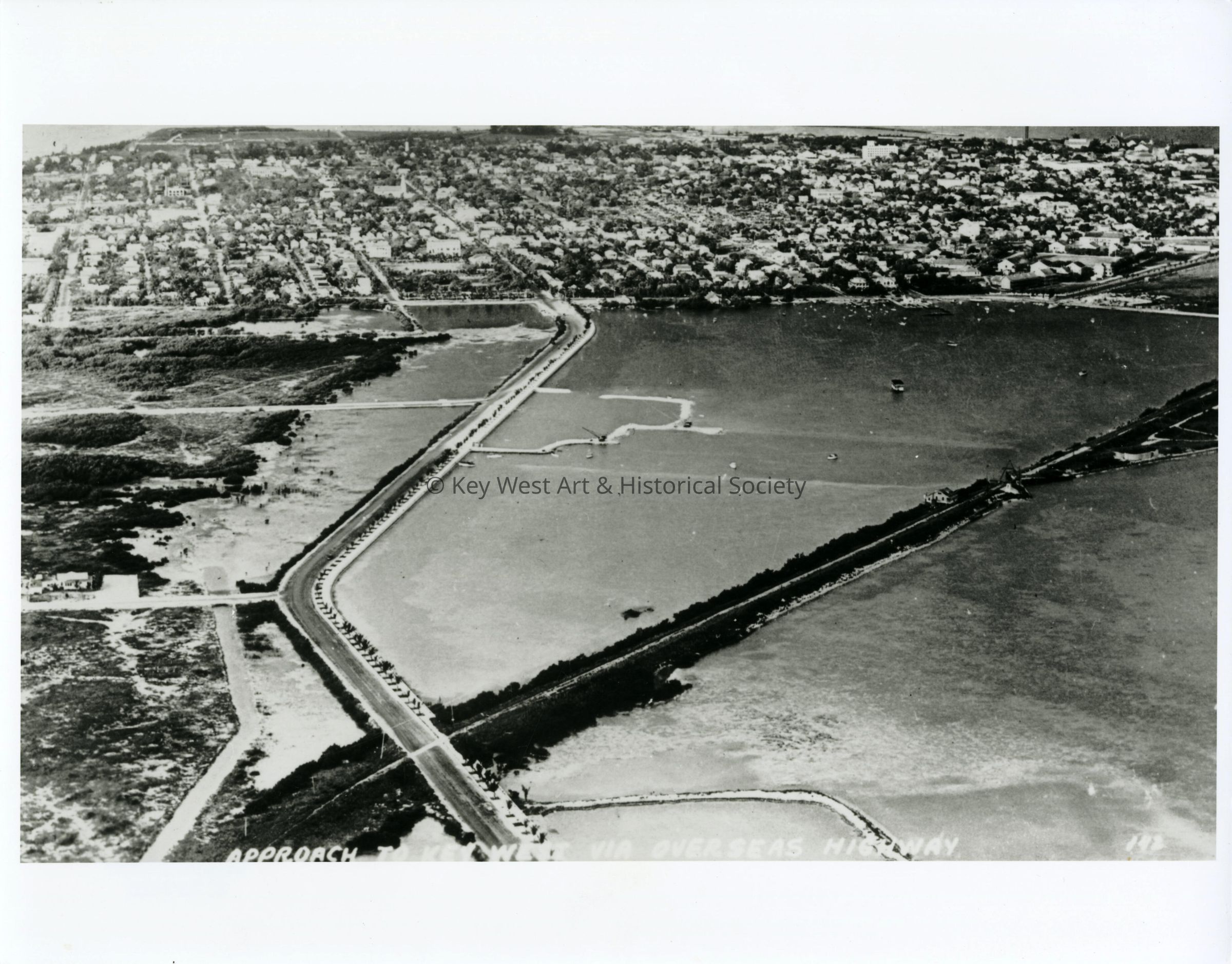 Black and white aerial photograph of North Roosevelt Boulevard and Garrison Bight at Hilton Haven.