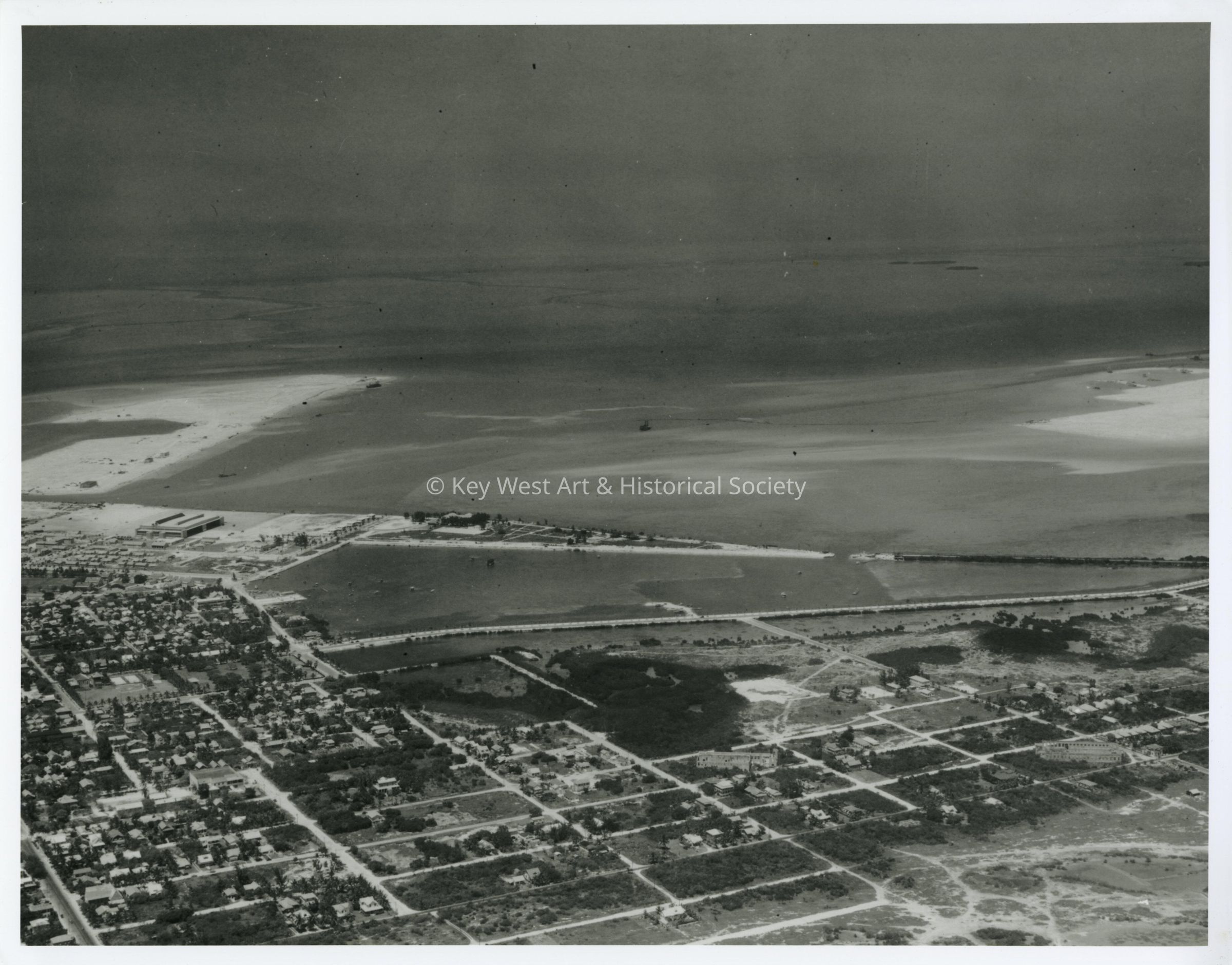 Black and white aerial photograph of Garrison Bight and Trumbo Point.