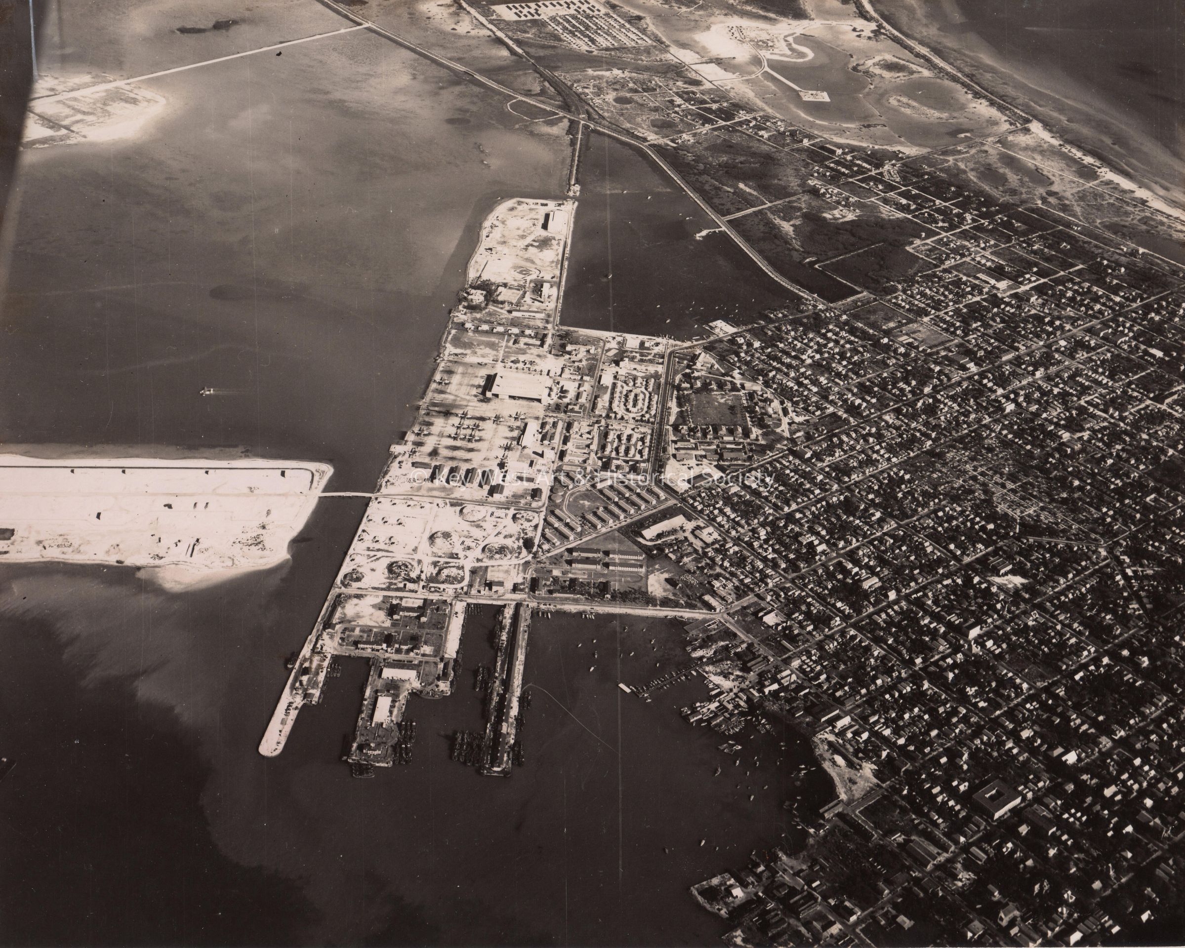 Aerial view of the US Naval Station, at Trumbo Point, Key West, on December 16, 1944.Collection