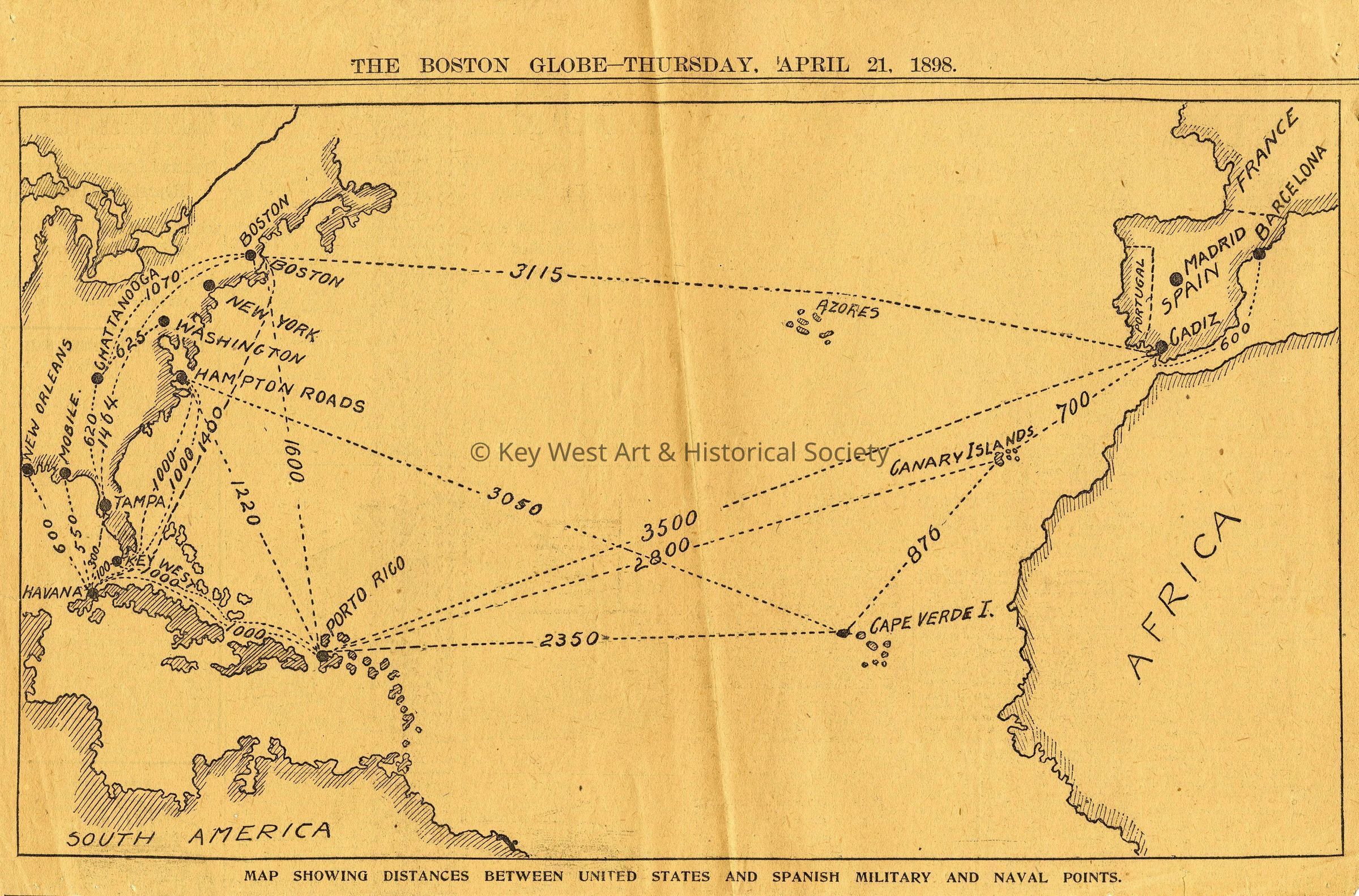 Map Showing Distances Between United States and Spanish Military and Naval Points