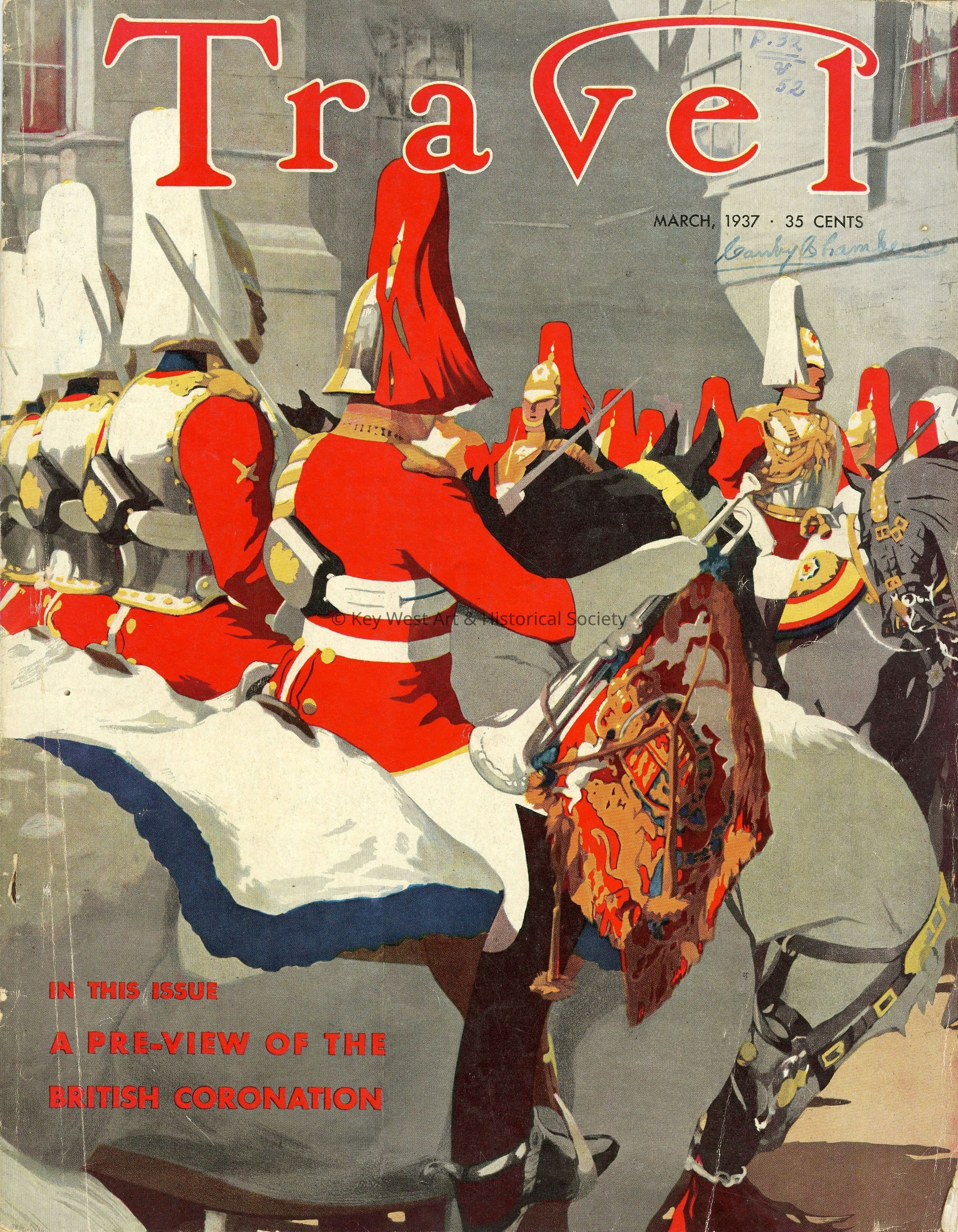 Travel feature article on the Florida Keys entitled 'America's Southernmost City' written by Canby Chambers and illustrated by Waldo Peirce in the March 1937 edition of Travel Magazine.