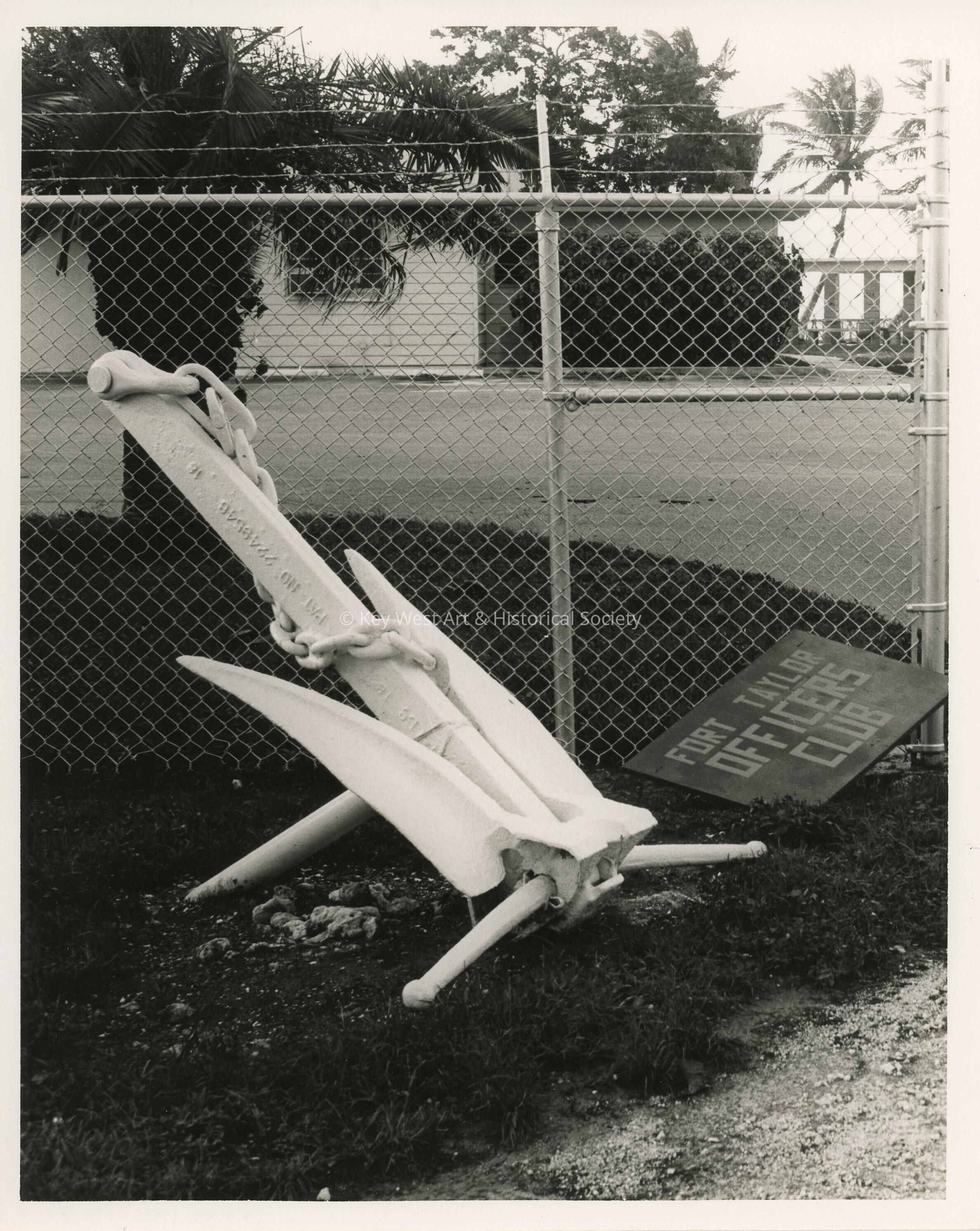 An Anchor sitting next to a sign that reads Fort Taylor Officers club.Collection