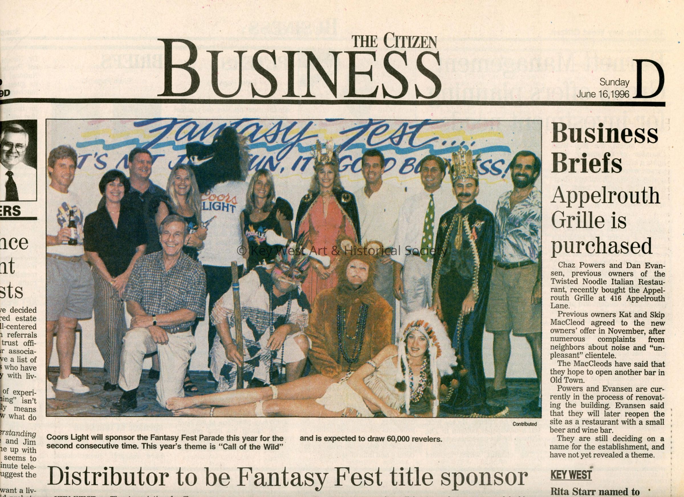 An article in the Key West Citizen about Fantasy Fest that reads Distributor to be Fantasy Fest title sponsor.