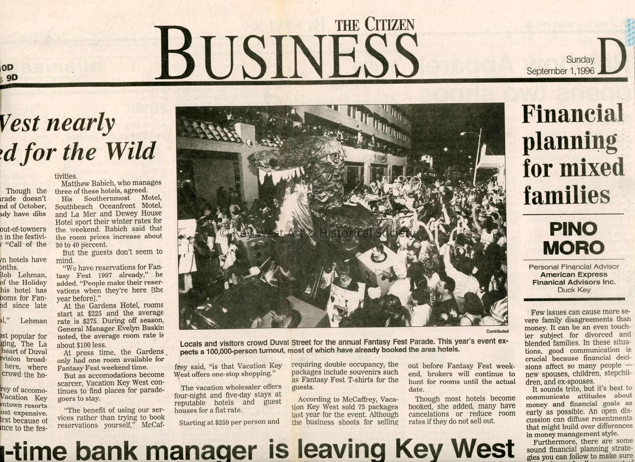 An article in the Key West Citizen that reads Key West nearly booked for the wild.