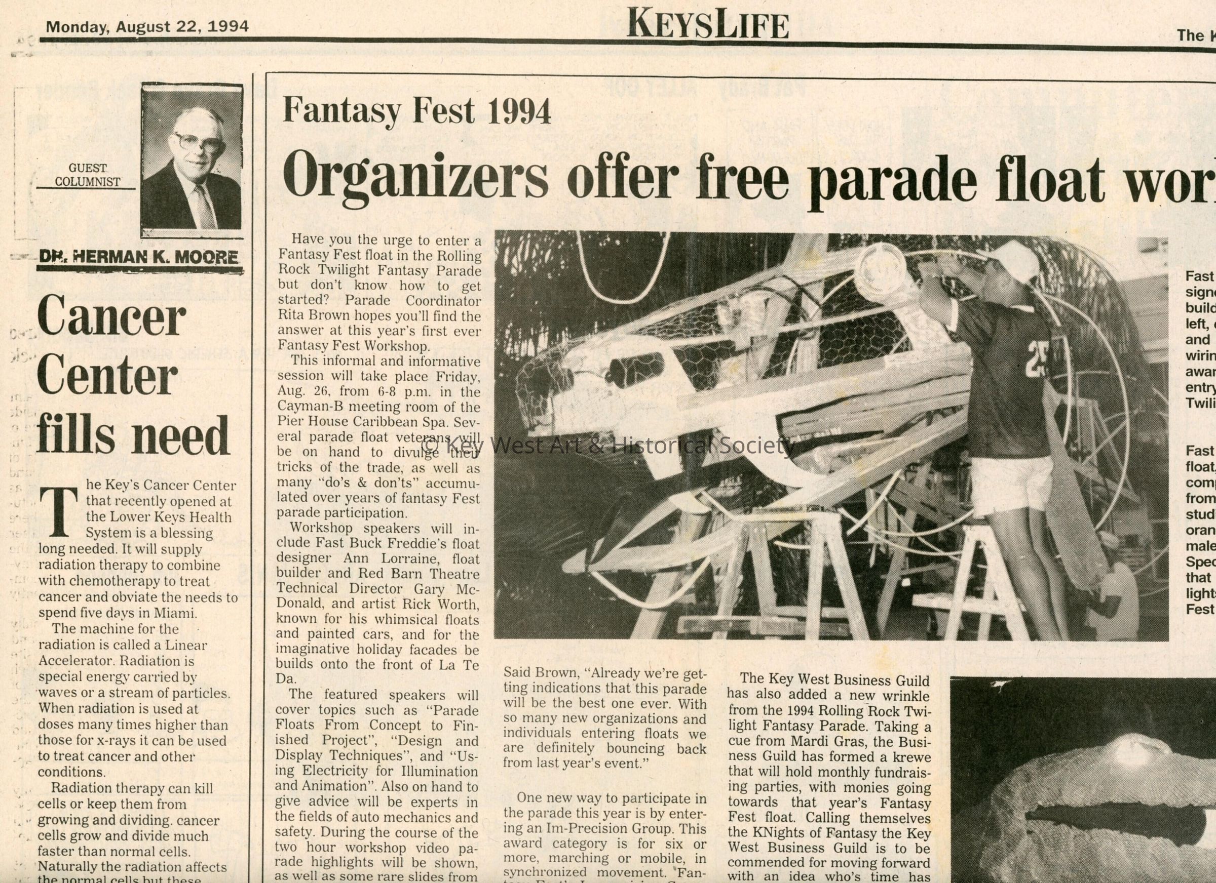 An article in the Key West Citizen that reads Organizers offer free parade float workshop.