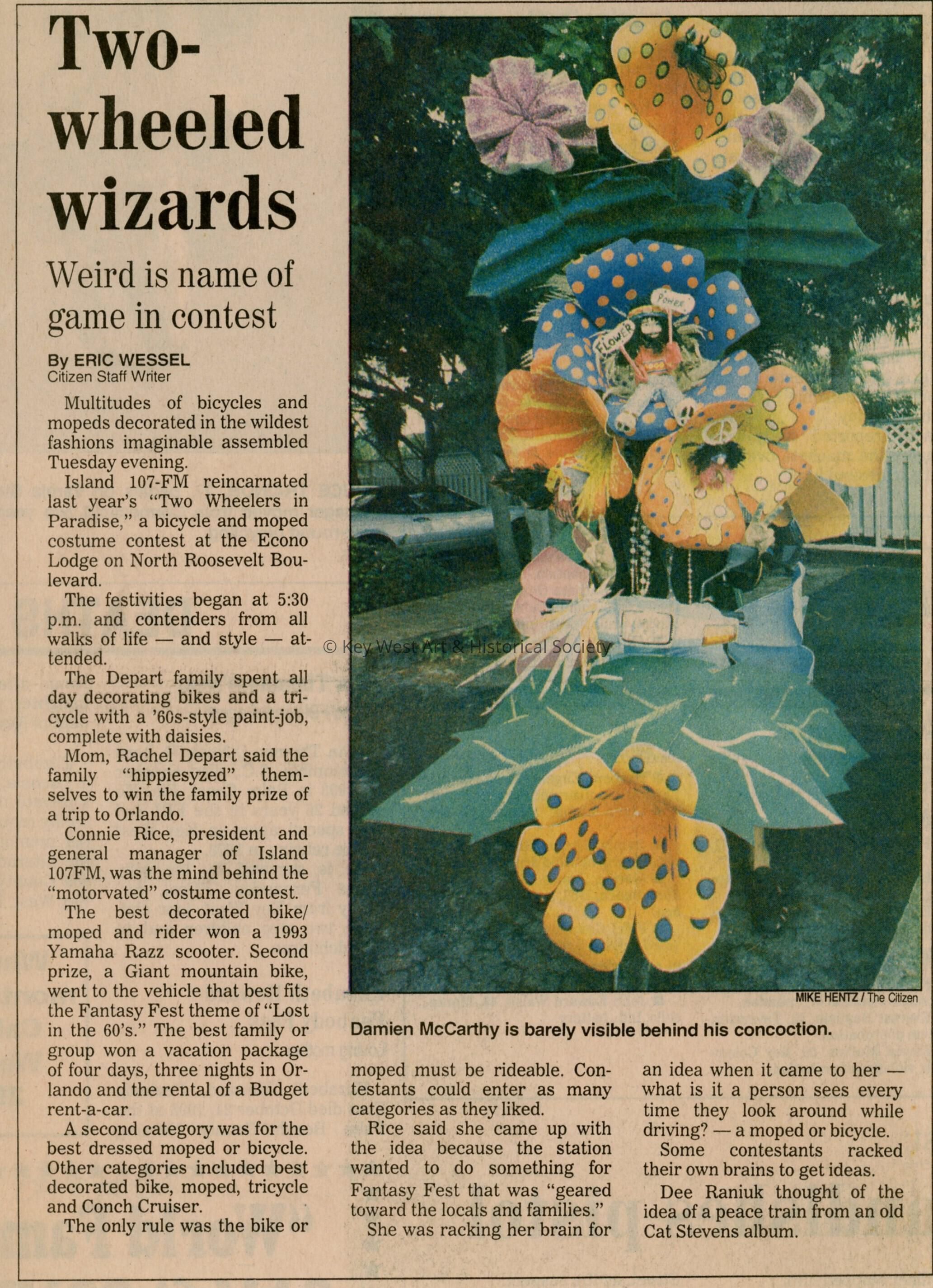 An article in the Key West Citizen that reads Two-wheeled wizards.