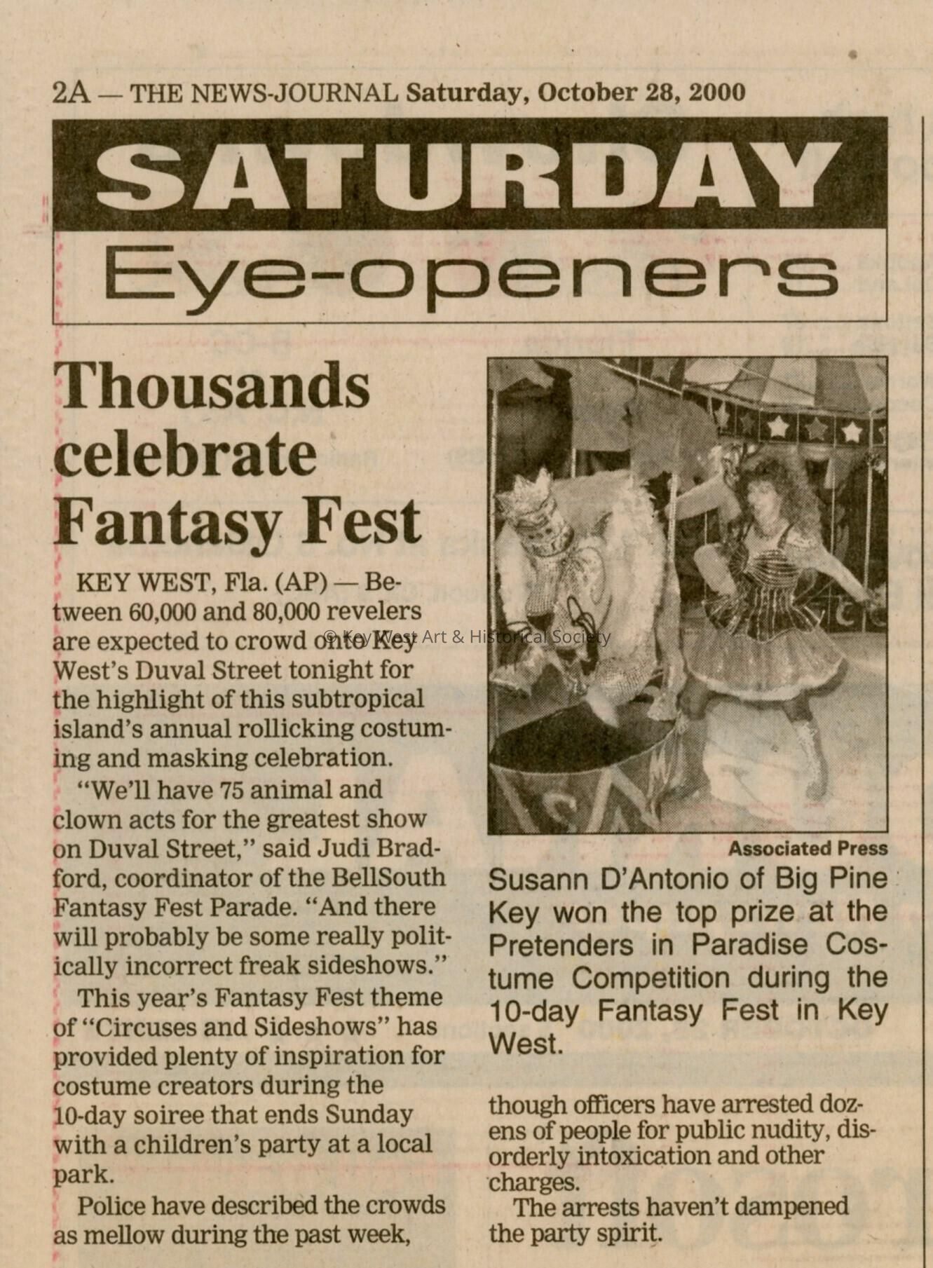 An article in the News Journal about Fantasy Fest that reads Thousands celebrate Fantasy Fest.