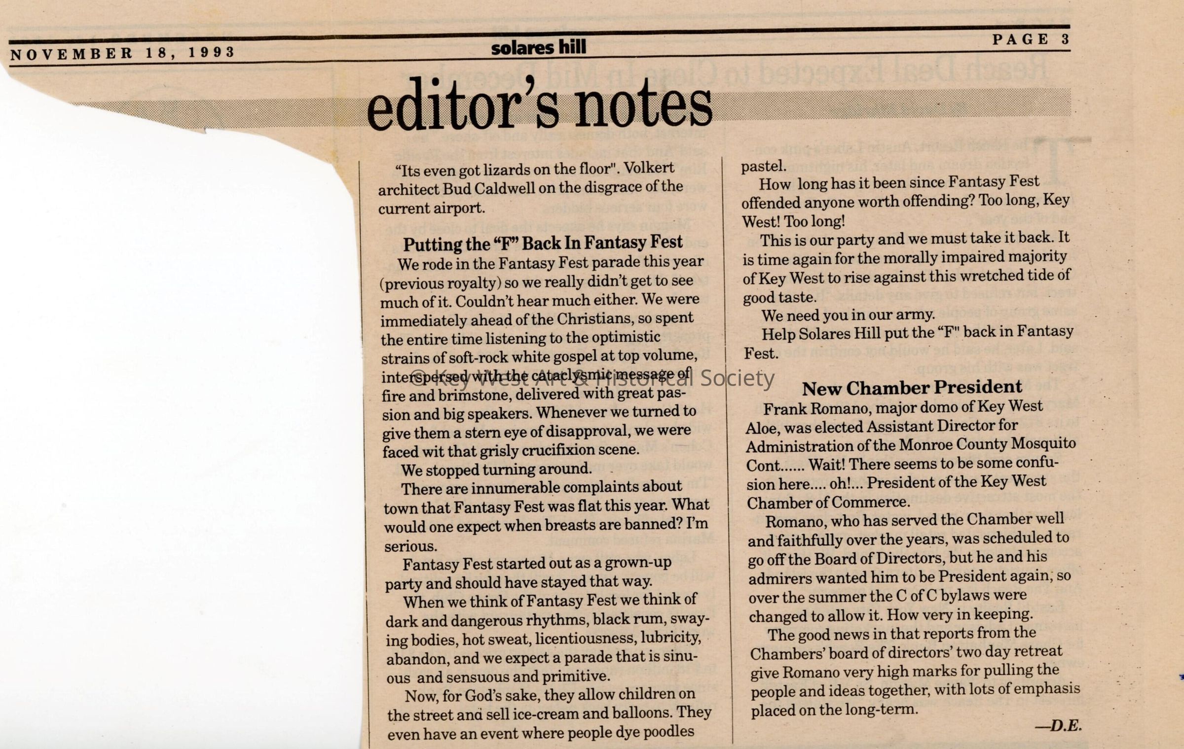 An article in the Solares Hill newspaper that reads Putting the "F" back in Fantasy Fest.