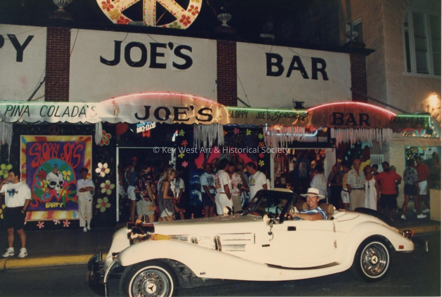 An old car in front of Sloppy Joe's Bar.