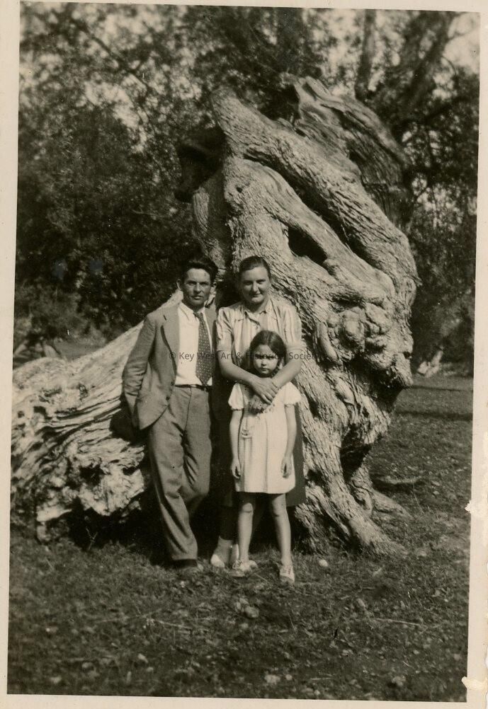An unknown family standing near a tree