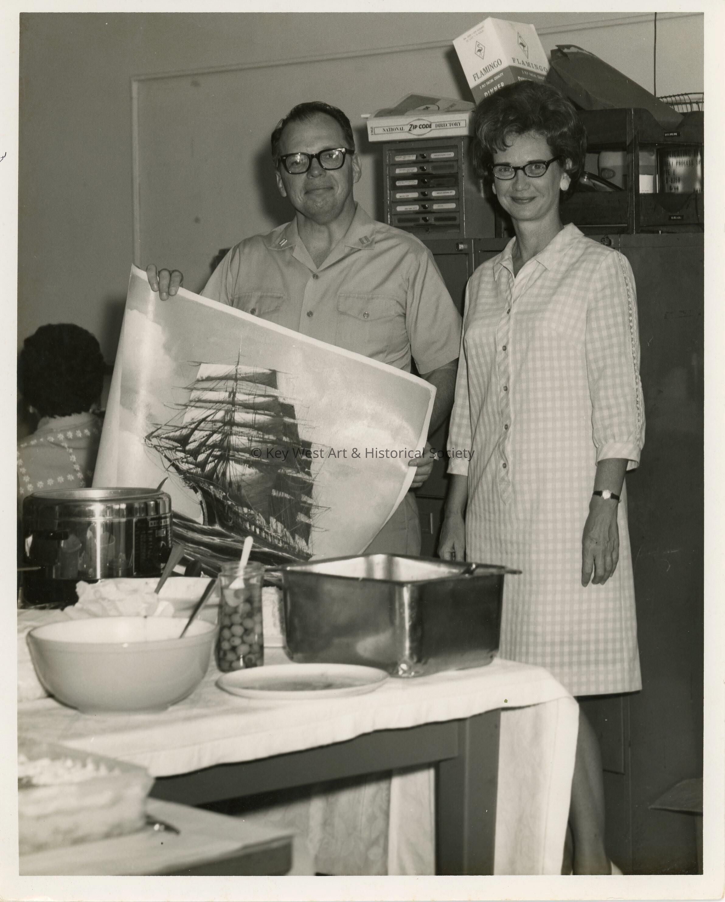 An unknown lady and man holding up artwork at a partyEntry/Object ID
