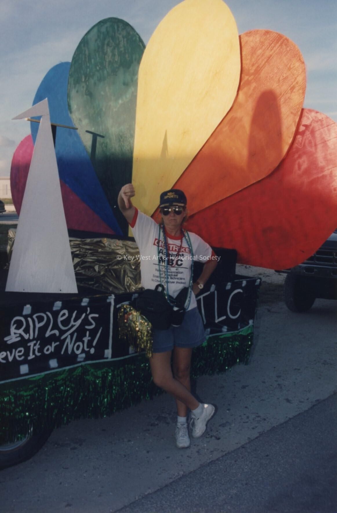 An unknown lady standing in front of a float.