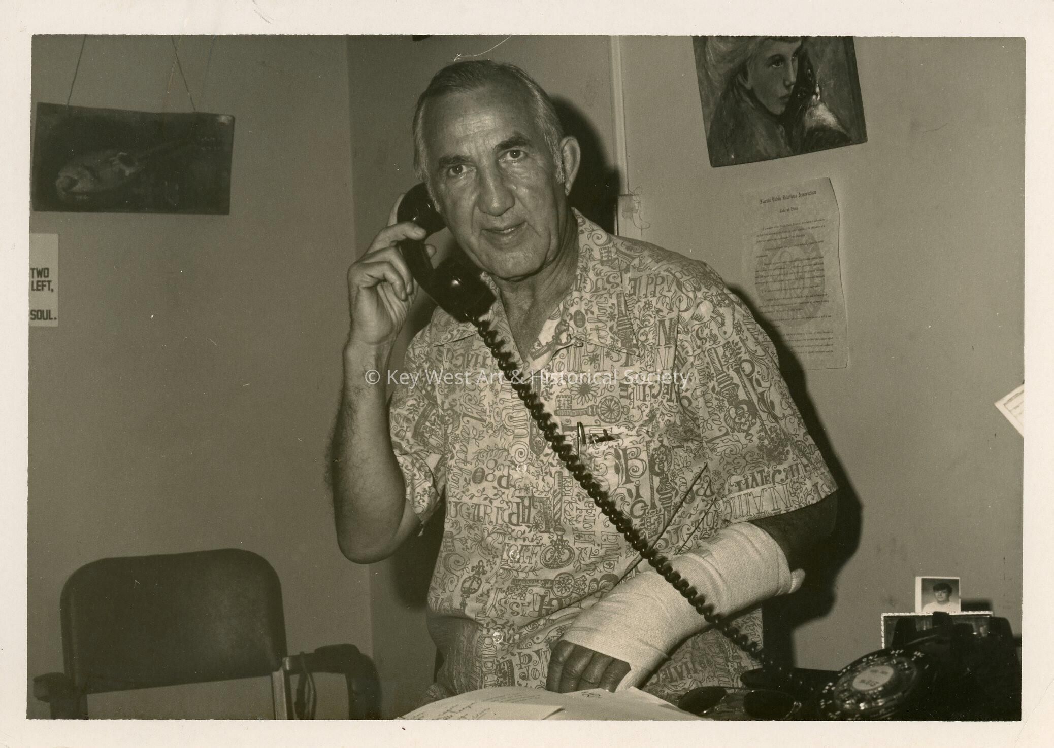 An unknown man using a telephone