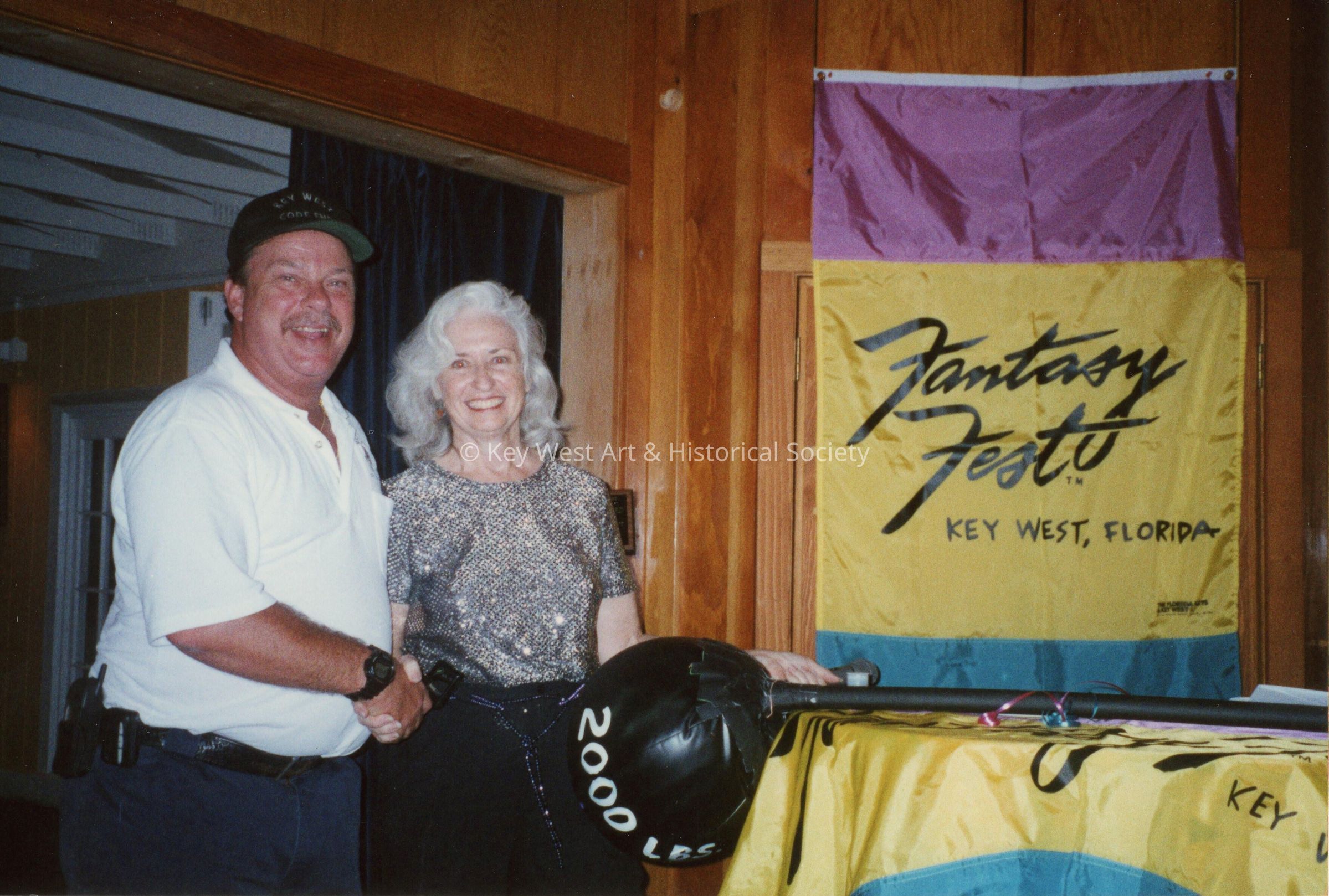 An unknown woman and man at an award ceremony.Entry/Object ID