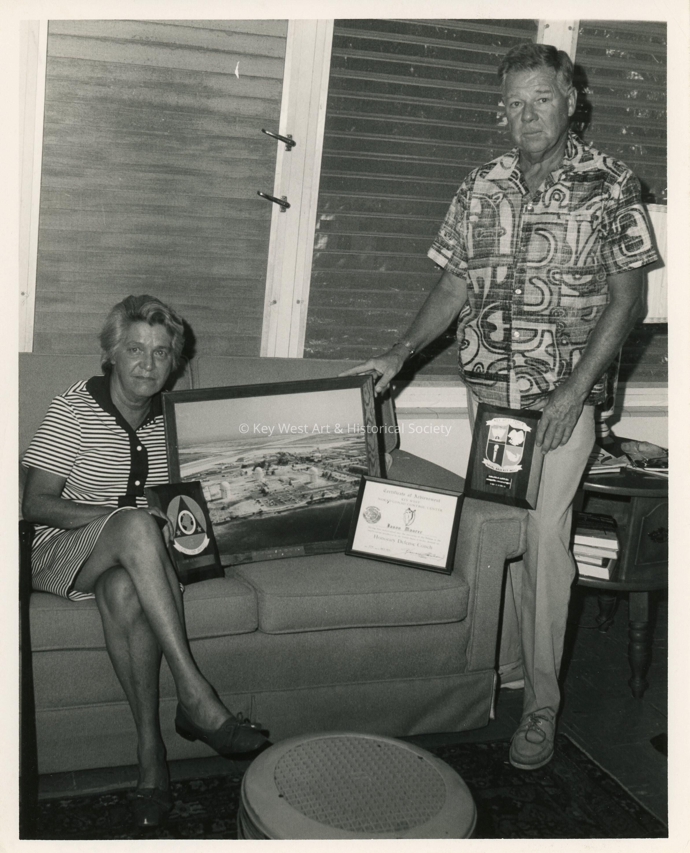 An unknown woman and man showing off a few awards.Collection