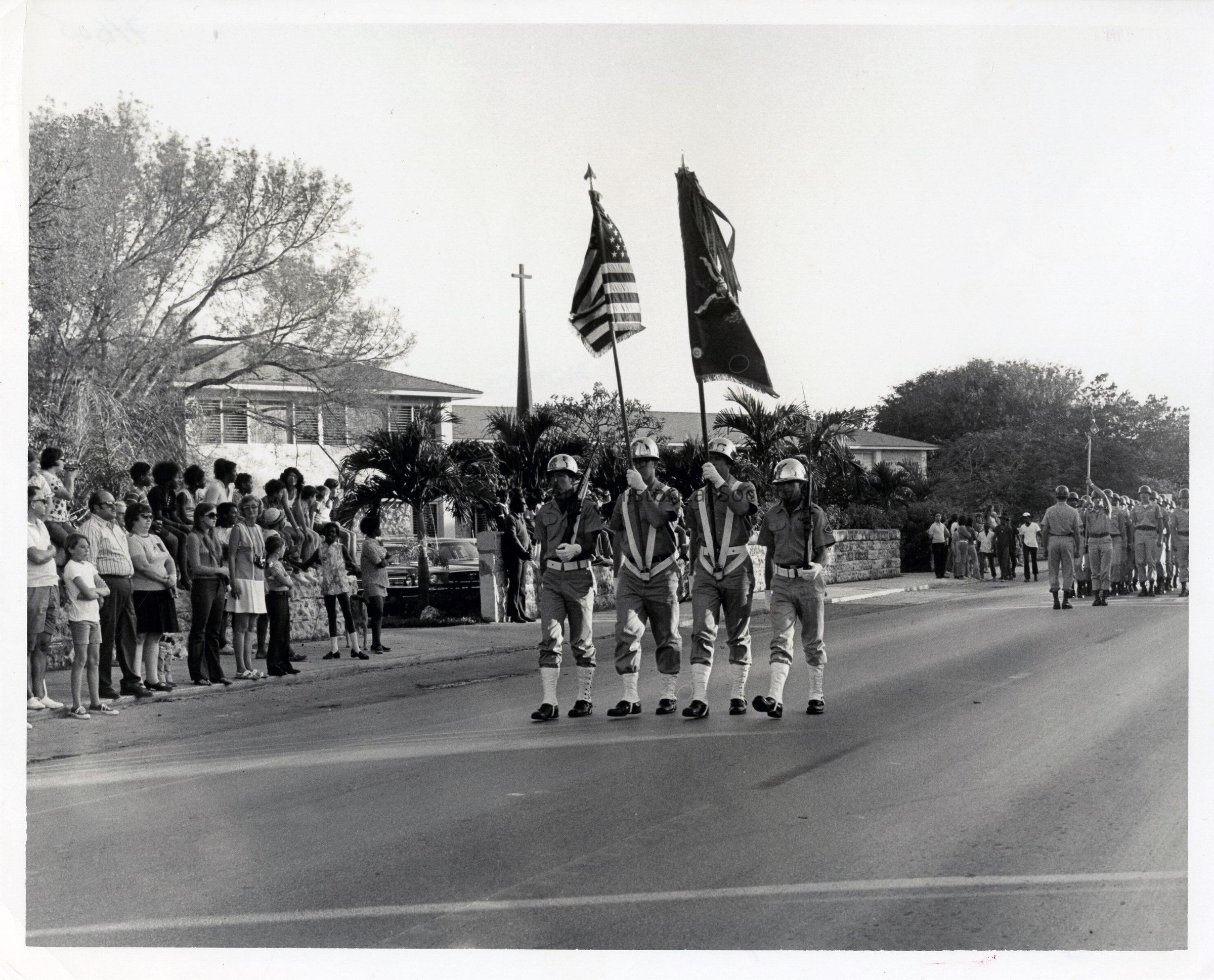 Black and white photograph of the Armed Forces Day Parade on Truman Avenue.