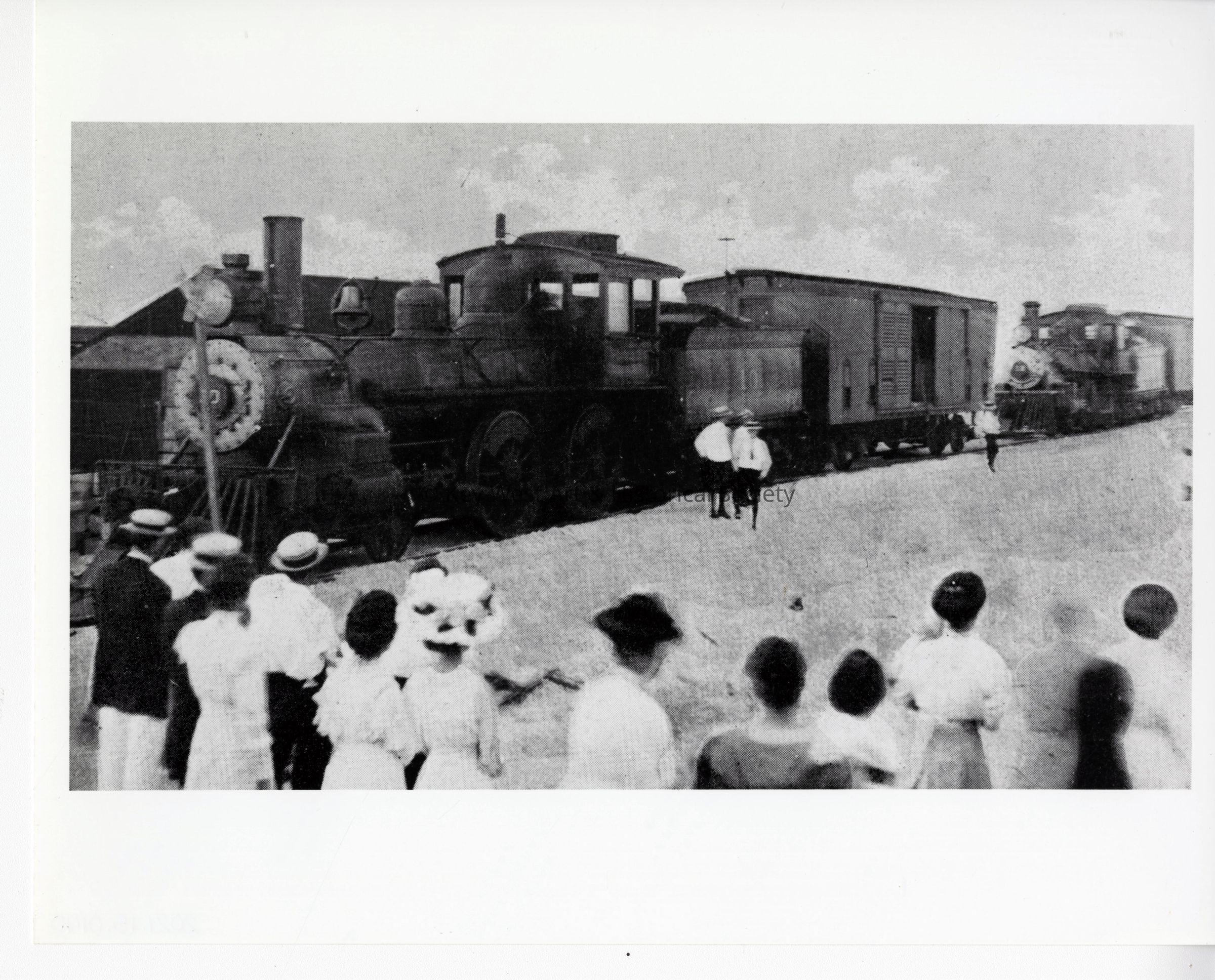 Black and white photograph of Florida East Coast Railway locomotives at the Key West depot.
