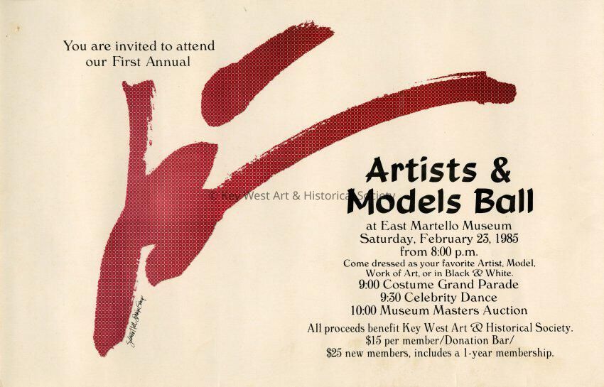 A poster advertising the First Annual 'Artists & Models Ball' held at the Fort East Martello Museum on February 23, 1985. The ball was a fundraiser for the Key West Art & Historical Society.Collection