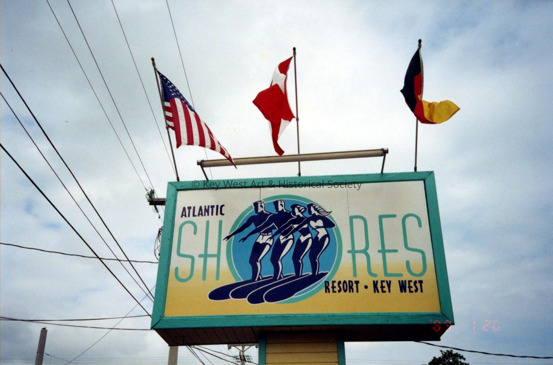 Color photograph taken by historian James M. Goode of the Atlantic Shores Resort sign at 510 South Street during a trip to Key West in February 2001. Printed from Roll 7.Photograph Details