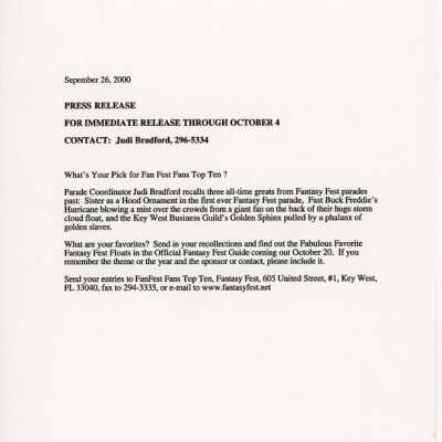 A press release looking for prior favorite parade floats.