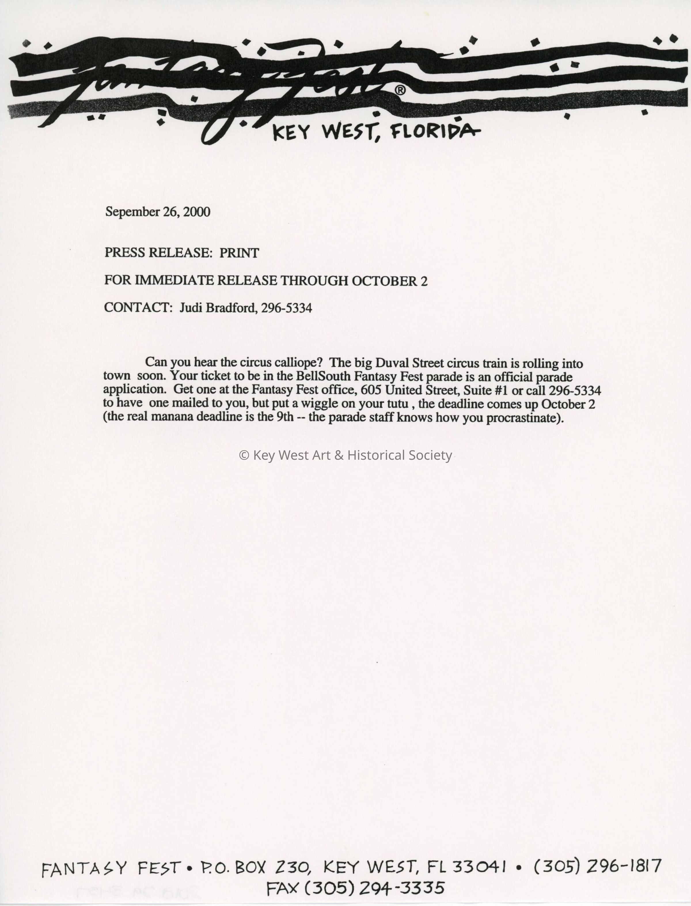 Press release about the parade deadline.