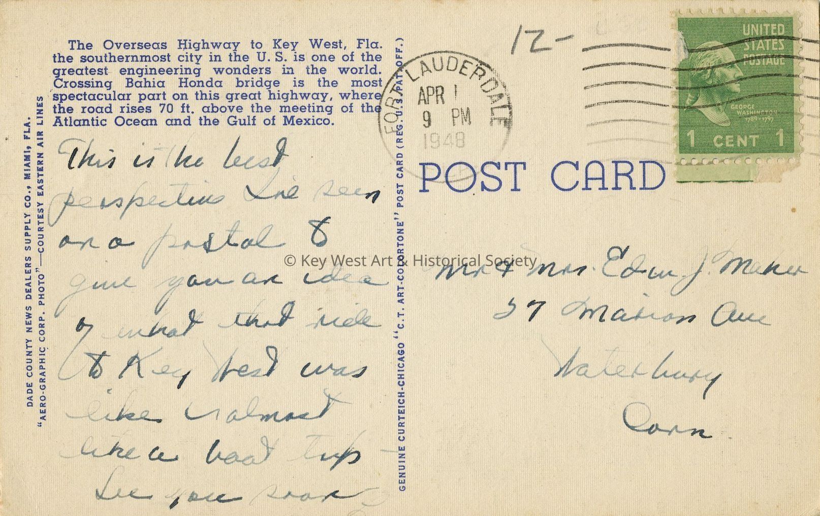 This is the best perspective I've seen on a postal & give you an idea of what that ride ot Key West was like ~ almost like a boat tub. See you soon.Dimensions
