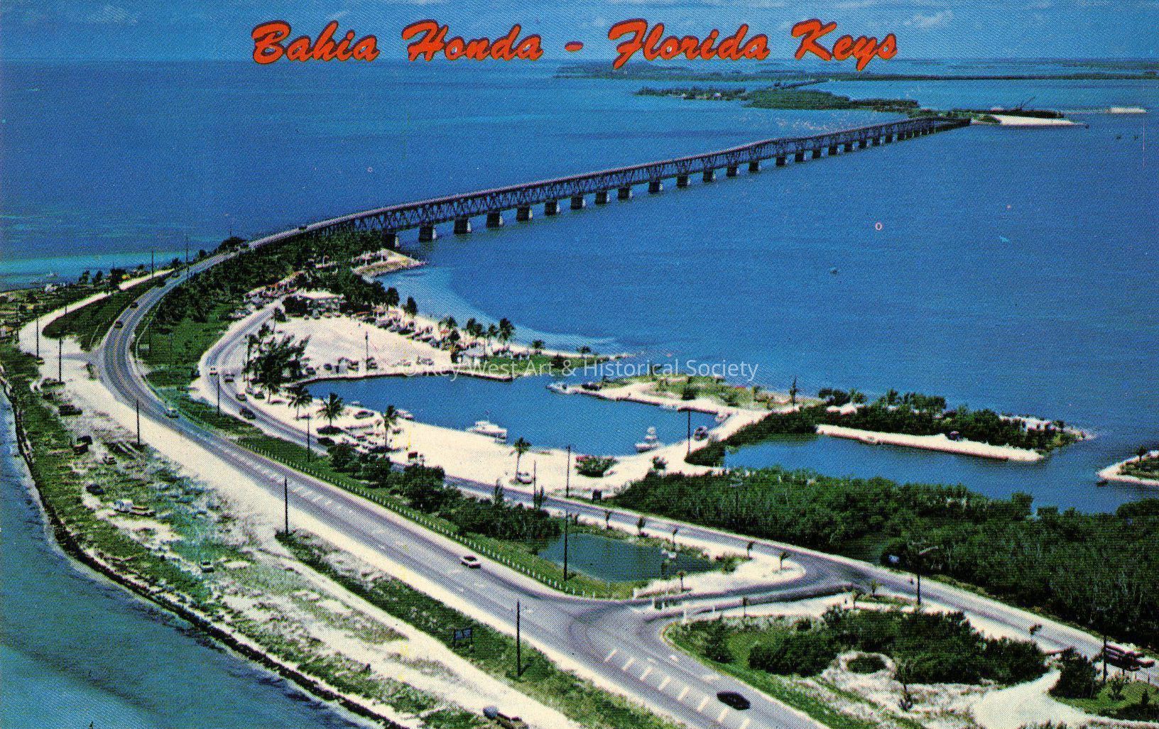 Postcard of the Bahia Honda bridge and Bahia Honda State Park. Notation on verso, 'Bahia Honda, the highest bridge in the Florida Keys, and location for Bahia Honda State Park, one of the most popular in Florida.'Subject Place