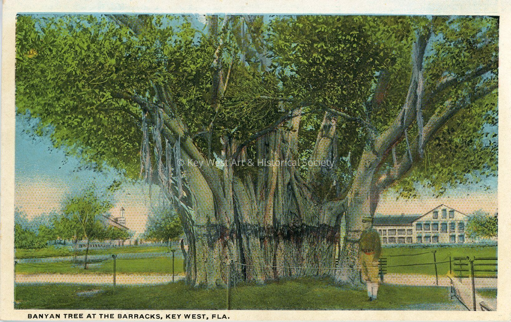 Postcard depicting a Banyan tree at the Barracks, Key West, FloridaCollection