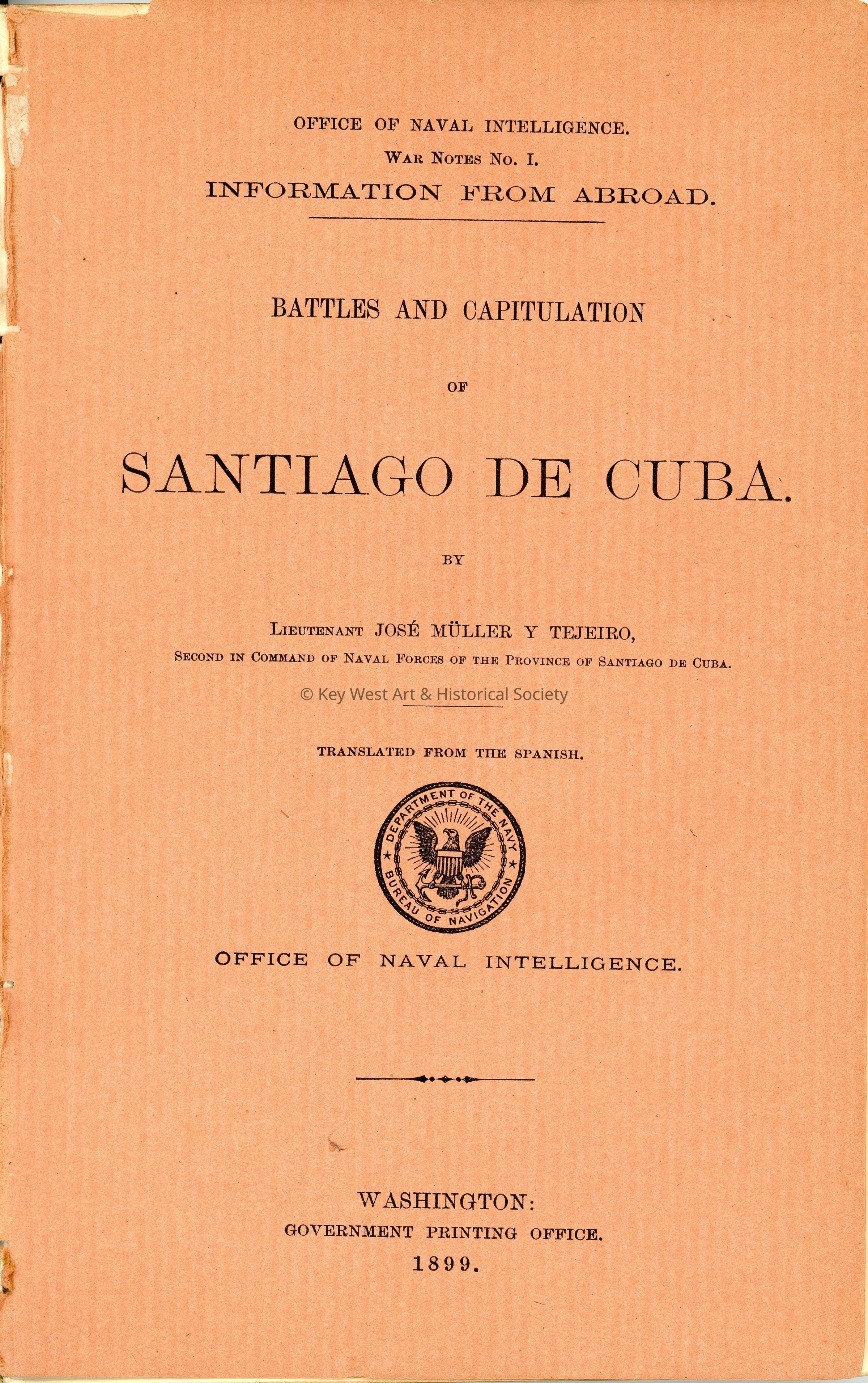 The writings of Spanish Navy Lieutenant José Müller y Tejeiro, Second in Command of Naval Forces of Santiago de Cuba as translated from the original Spanish.Collection