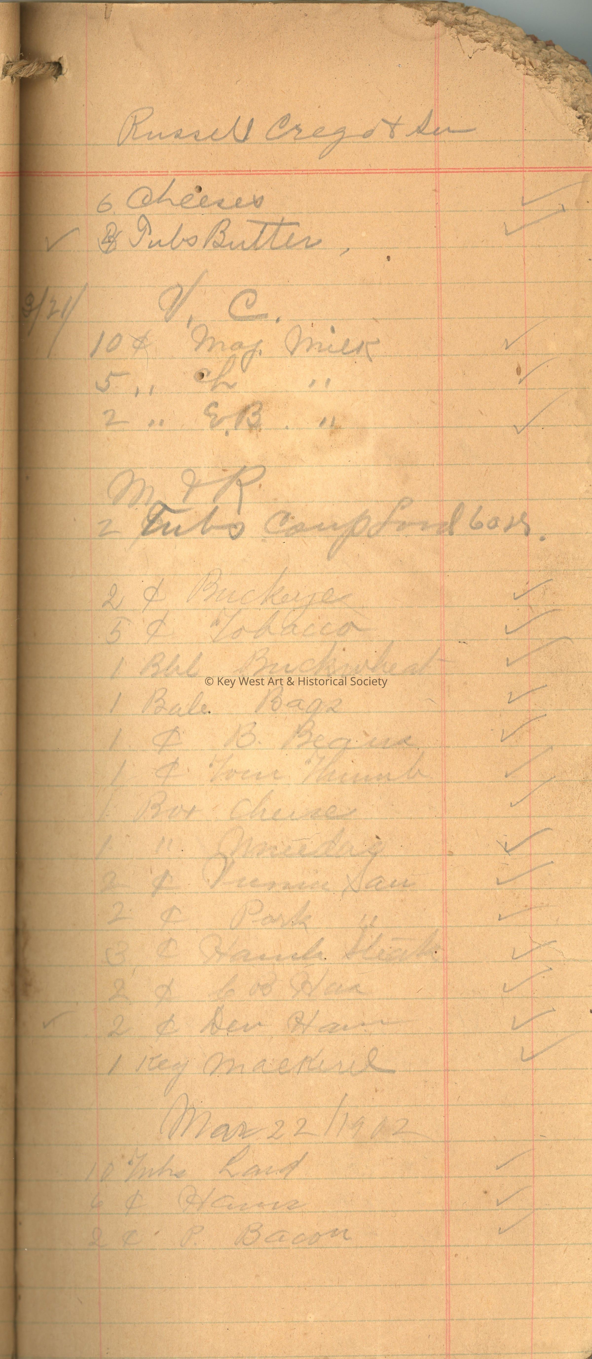 Peacon's Grocery Store Ledger: © Key West Art & Historical Society