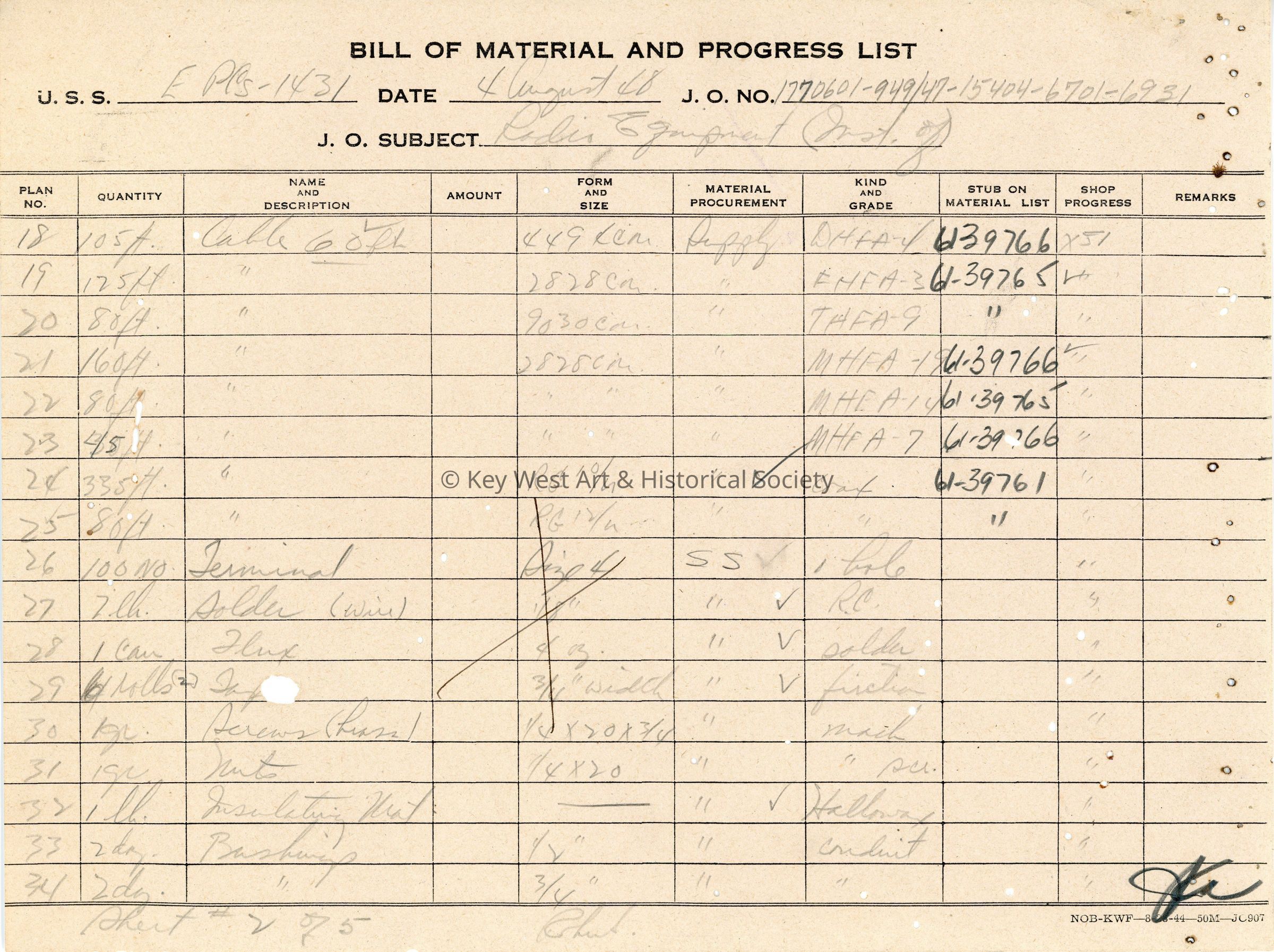 List and description of materials used in the installation of MAR/RDR radio equipment on the USS EPCS-1431 at Naval Station Key West. Page 2/5.