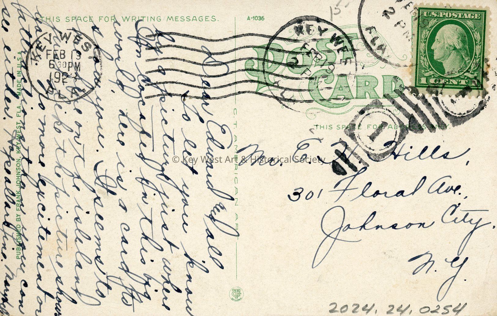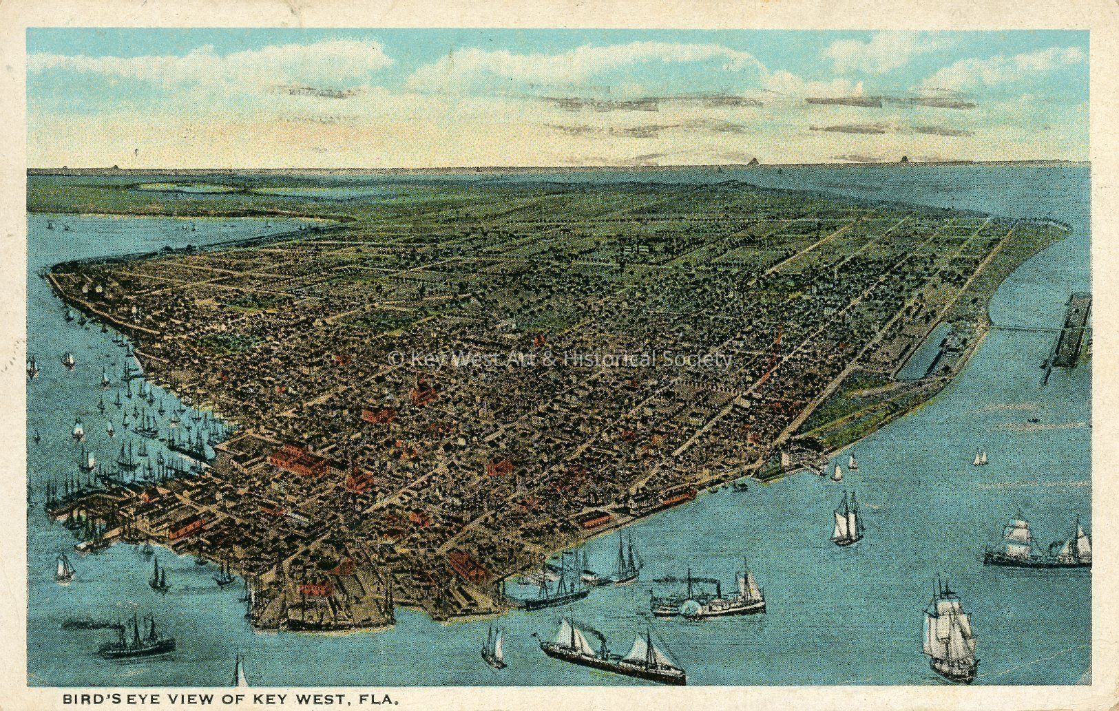 Postcard depicting a bird's eye view of Key West, Florida.Collection