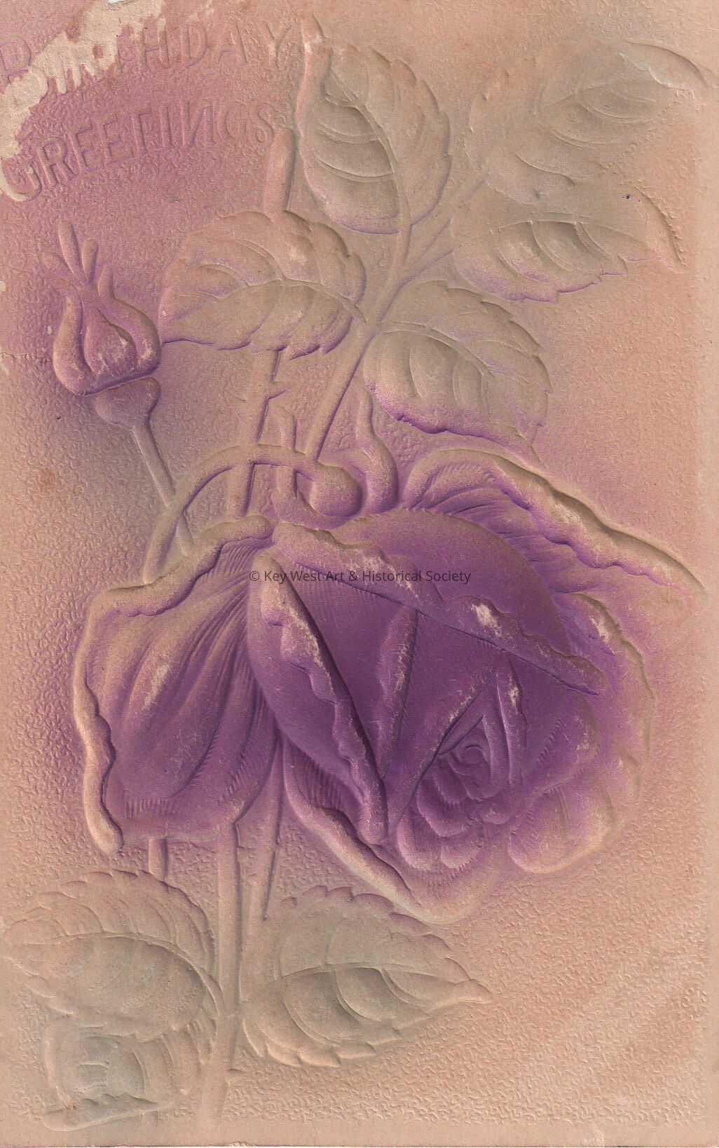 Postcard depicting a rose. The caption reads, ‘Birthday Greetings’.Collection
