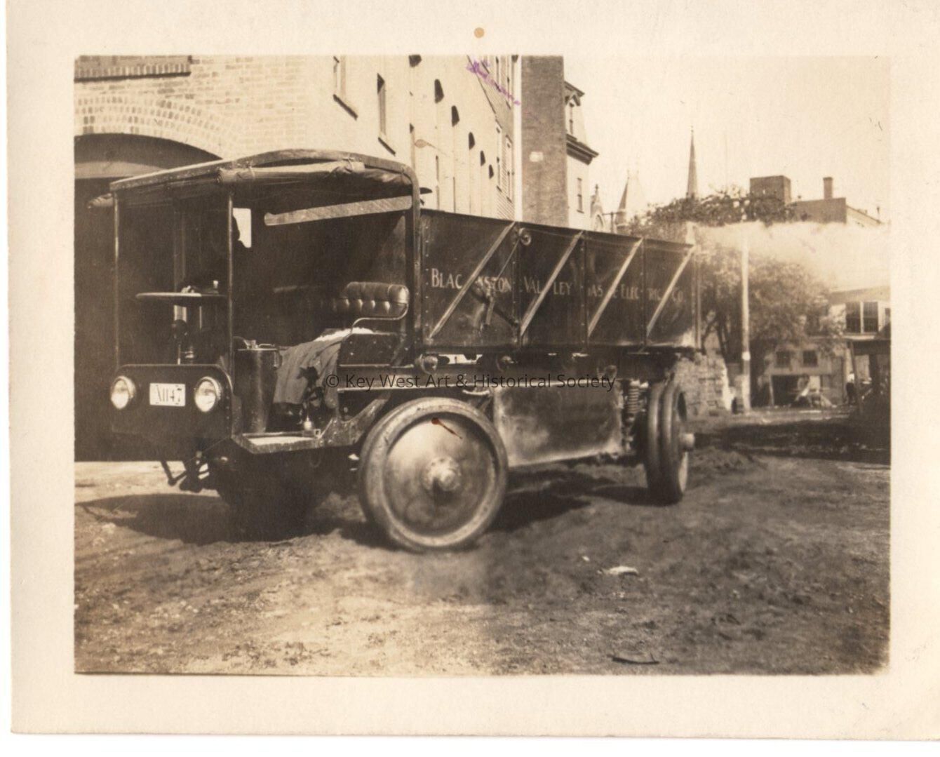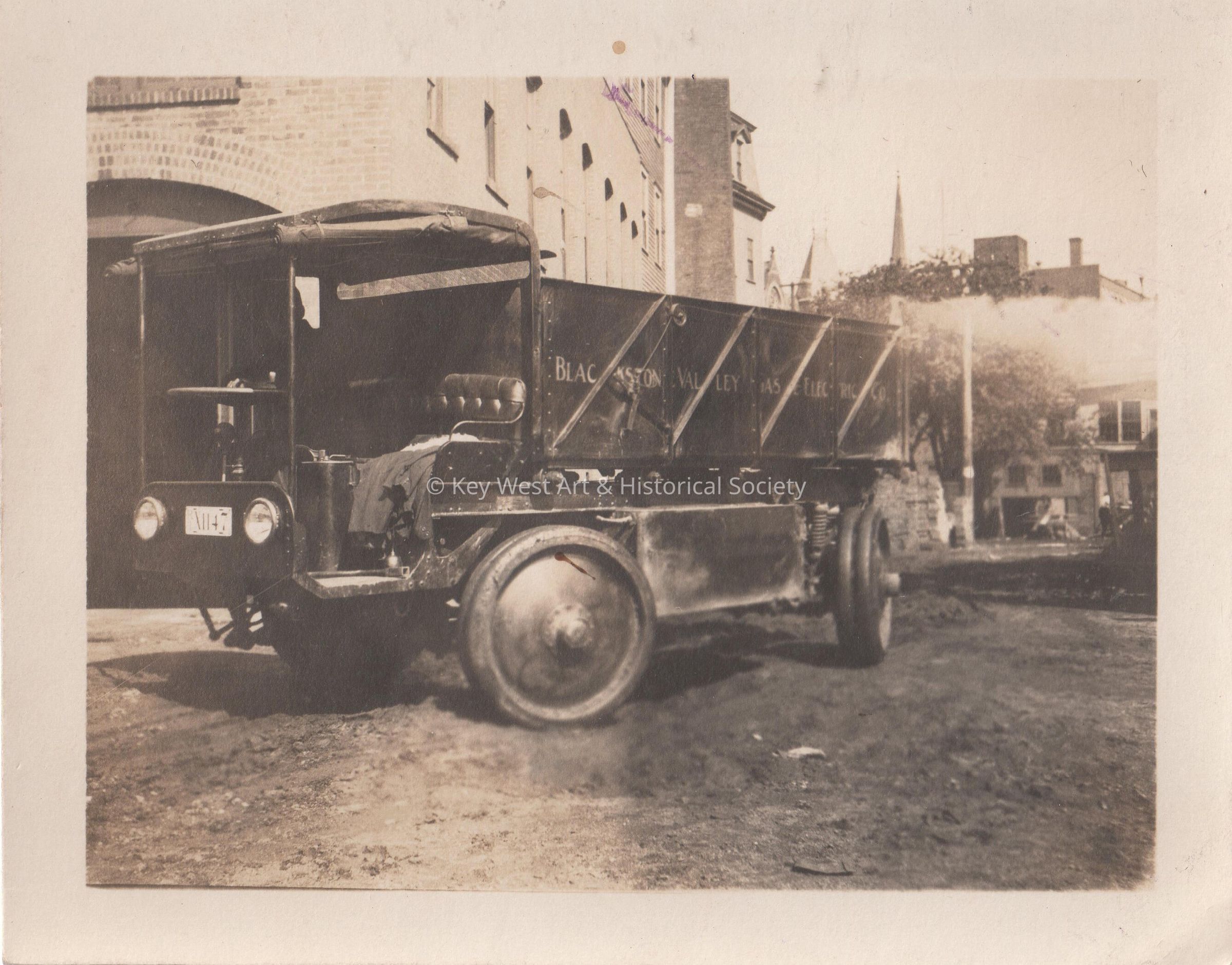 Black and white photo of a Blackstone Valley Gas and Electric Co truck.Collection