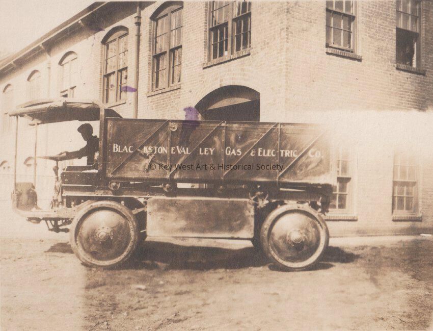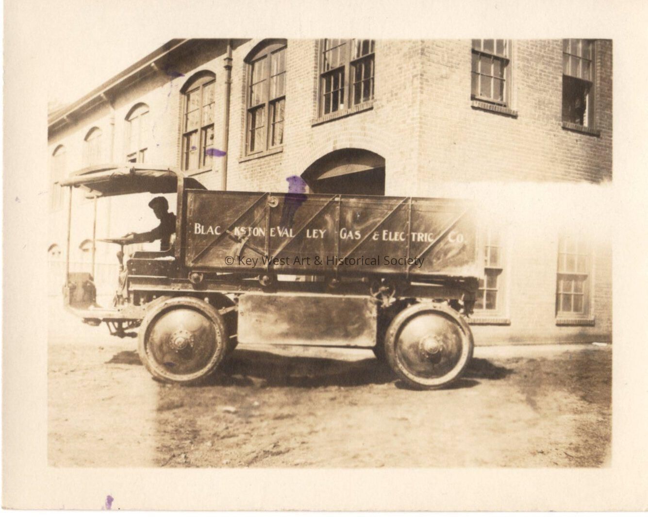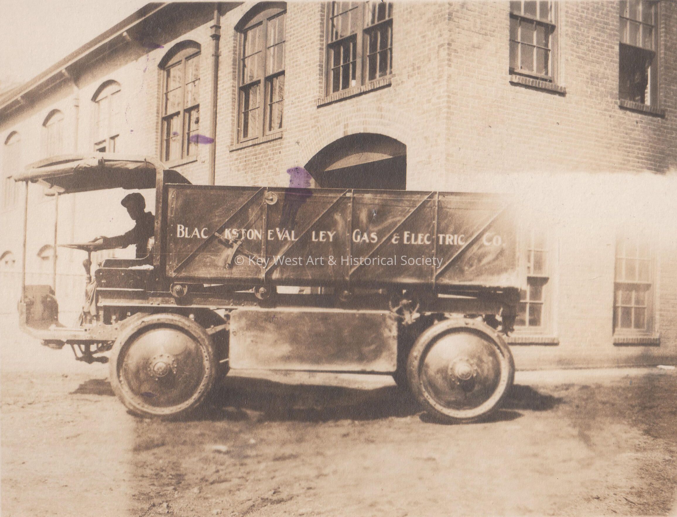 Black and white photo of a Blackstone Valley Gas and Electric Co truck.Collection