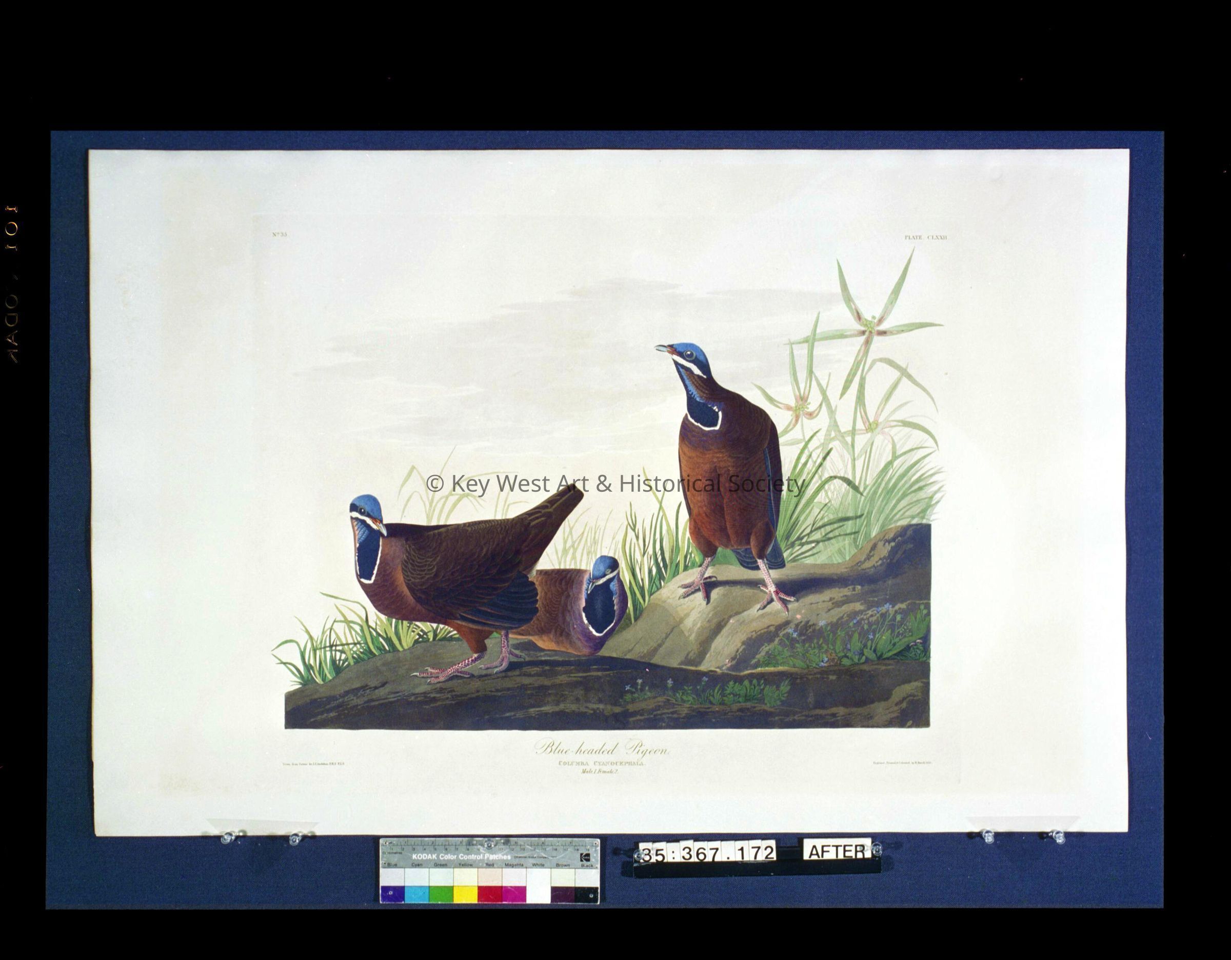 Color negative of John James Audubon's 'Blue-headed Pigeon', plate 172, in 'Birds of America'. He encountered the Blue-headed Pigeon during a visit to the Florida Keys and Cuba in 1832.Collection