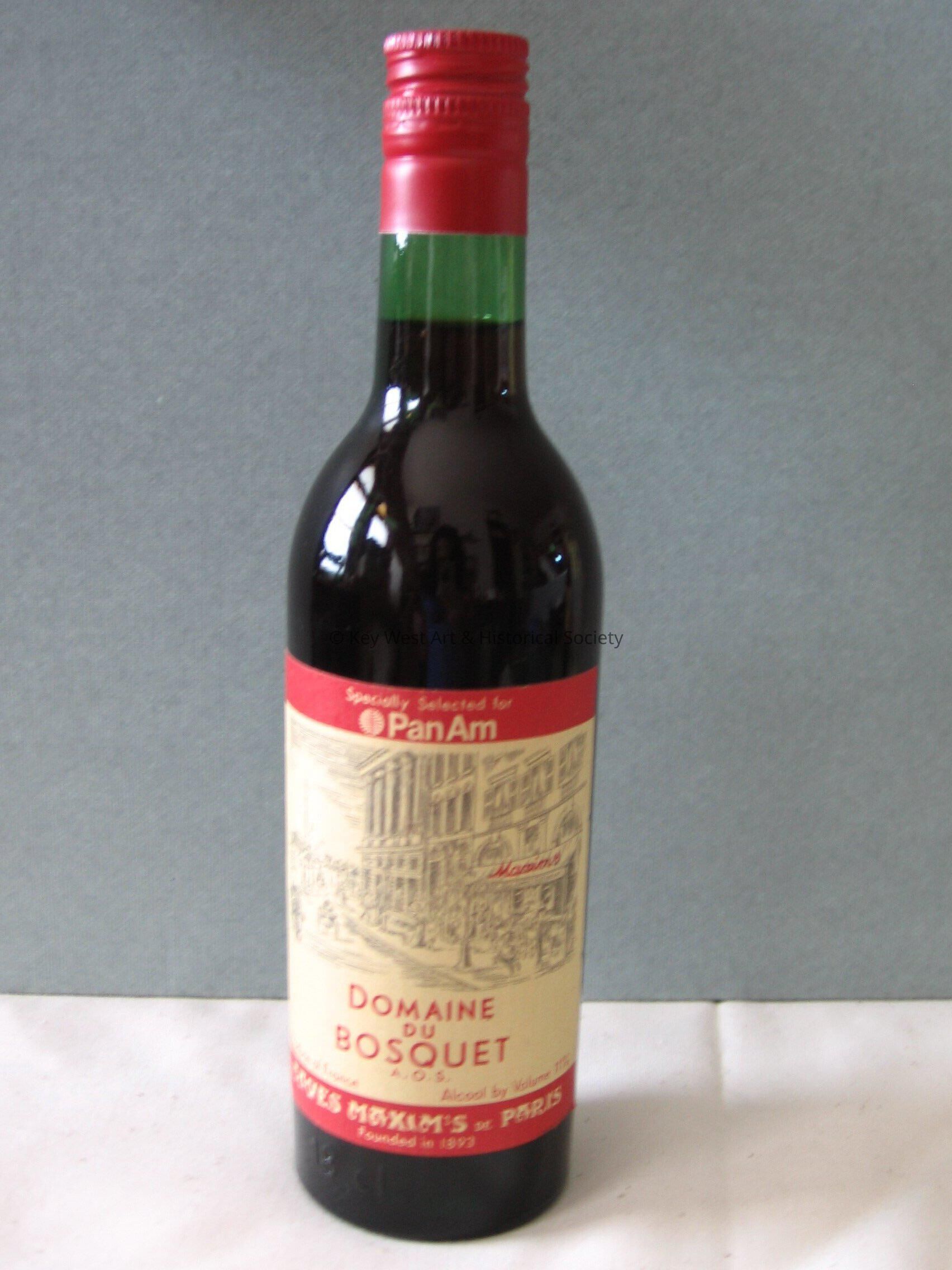 Unopened bottle of 'Domaine du Bosquet' wine from France served onboard Pan American Airlines.