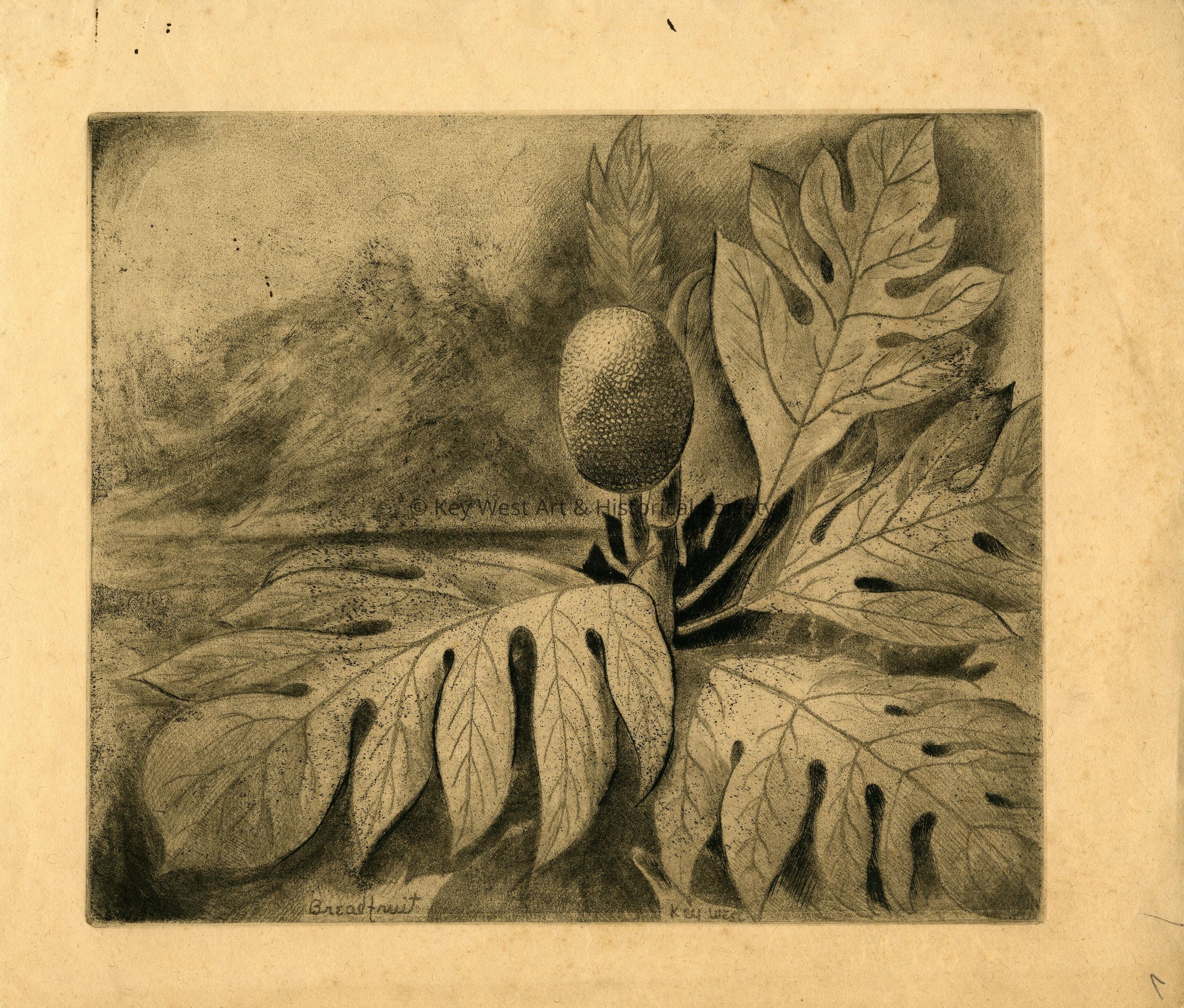 Etching by Stanley Wood depicting the breadfruit tree in Key West.
